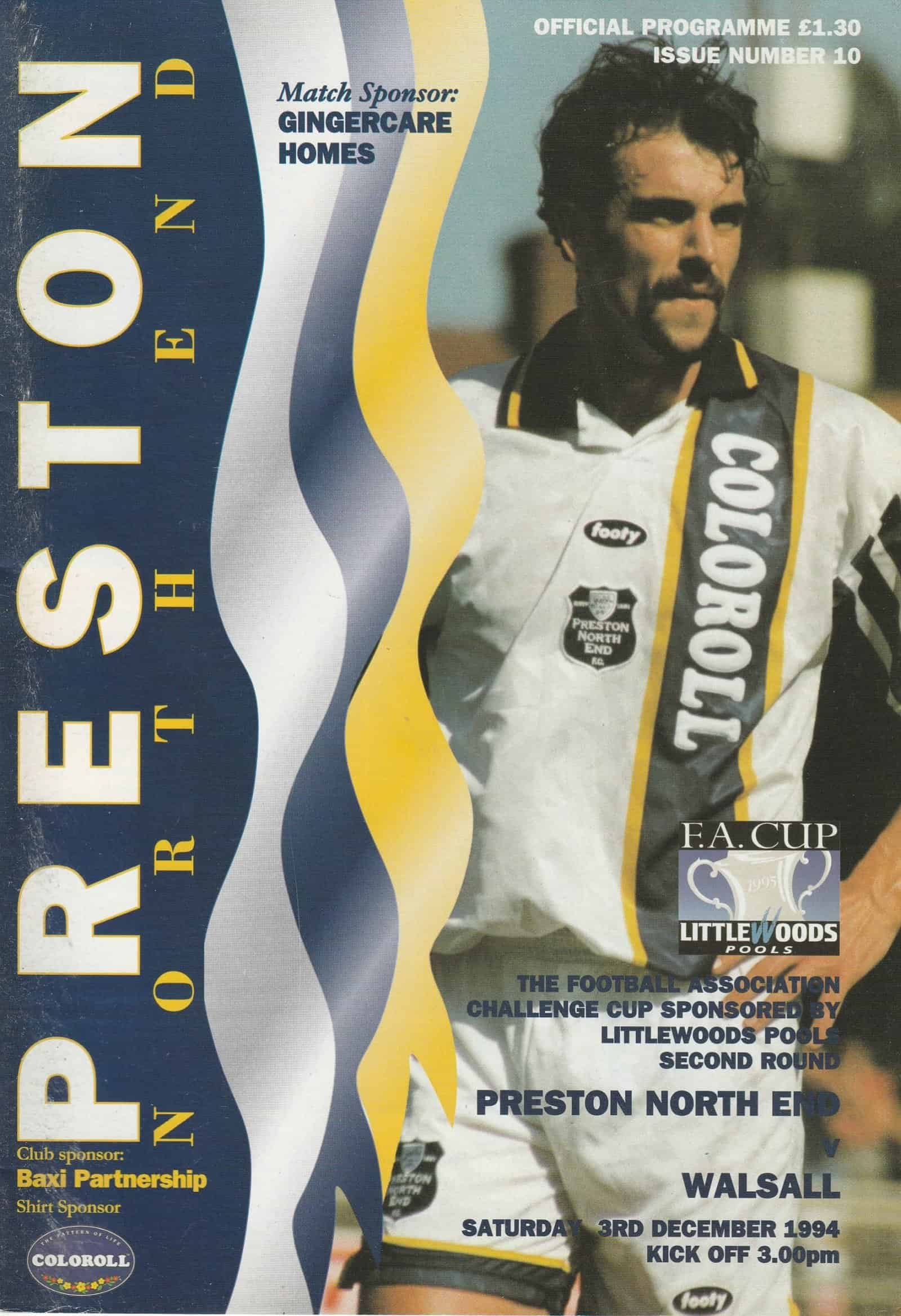 Match: Preston North End v Walsall Competition: FA Cup 2nd Round Date: 03-Dec-1994 Comments: Rating: 4 Condition: Very good Weight in grams: 140