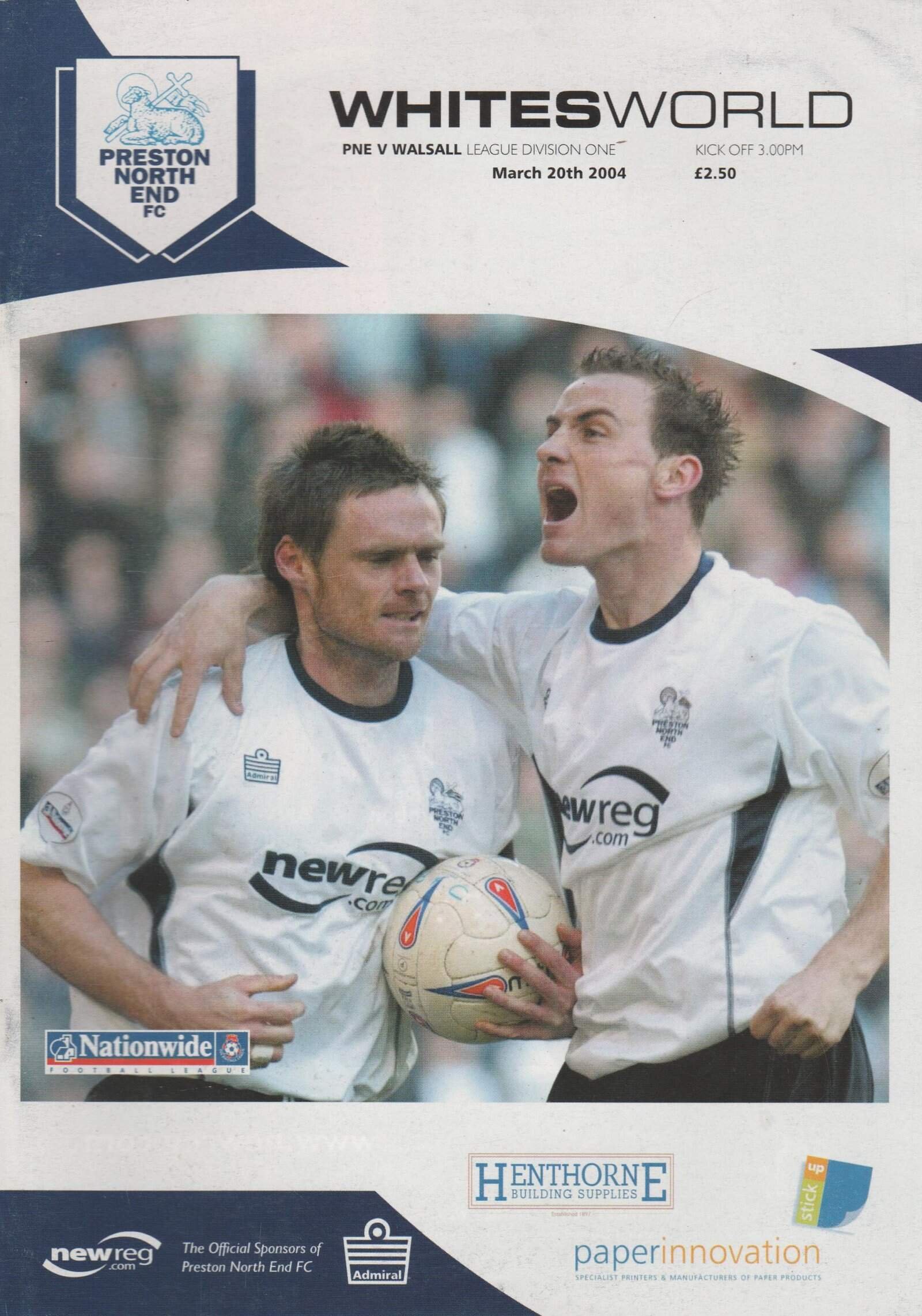 Match: Preston North End v Walsall Competition: League Division 1 Date: 20-03-2004 Comments: Rating: 4 Condition: Good Weight in grams: 160