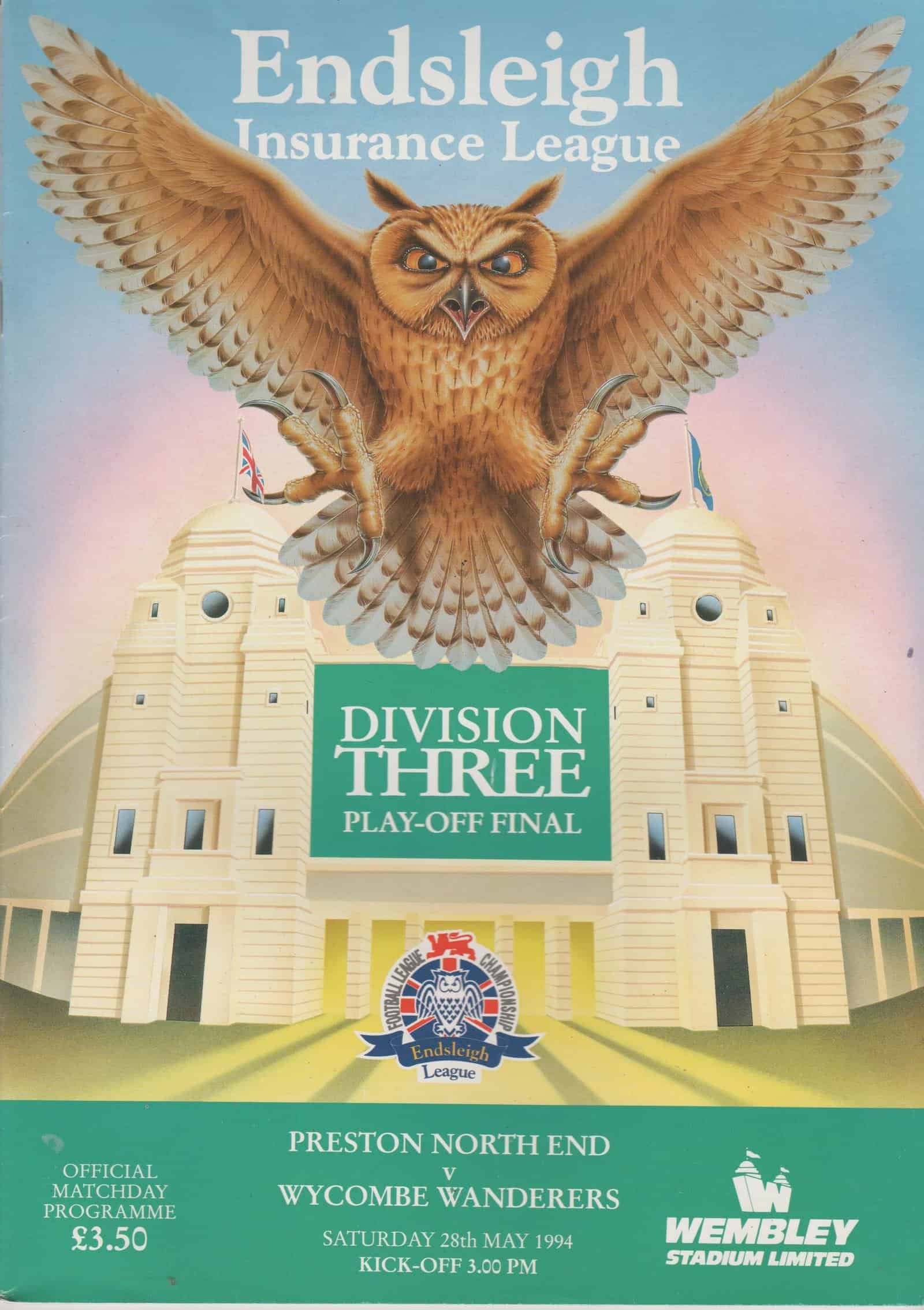 Match: Preston North End v Wycombe Wanderers Competition: League Division 3 Play off Final Date: 28-May-1994 Comments: Rating: 4 Condition: Very good Weight in grams: 160