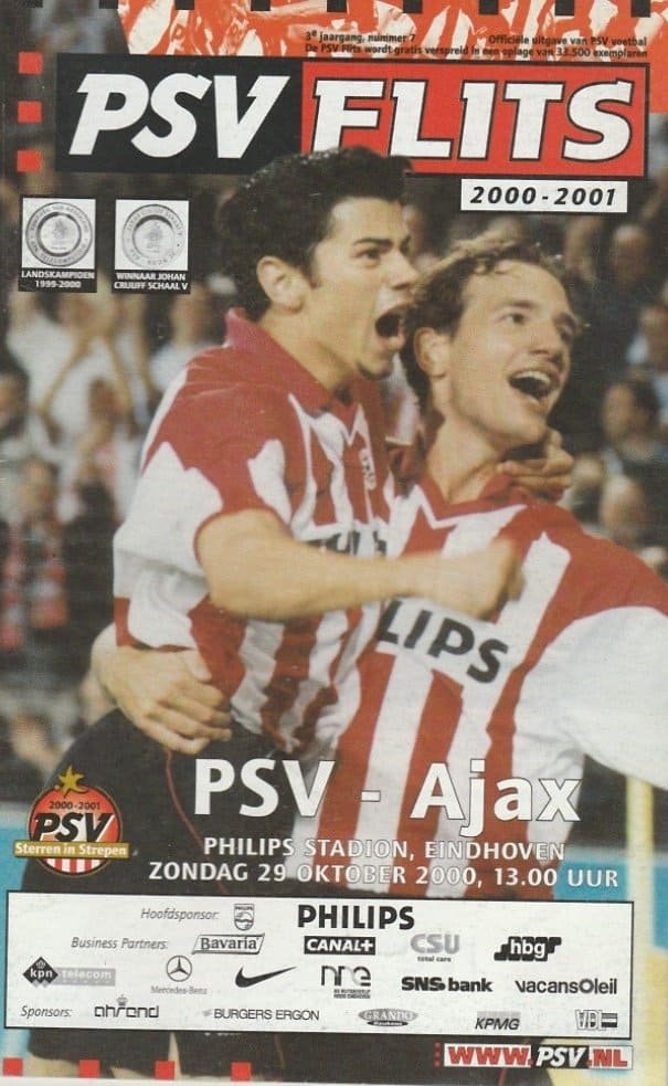 Match: PSV Eindhoven v Ajax Competition: EreDivisie Date: 29-Oct-2000 Comments: Rating: 4 Condition: Very good Weight in grams: 60