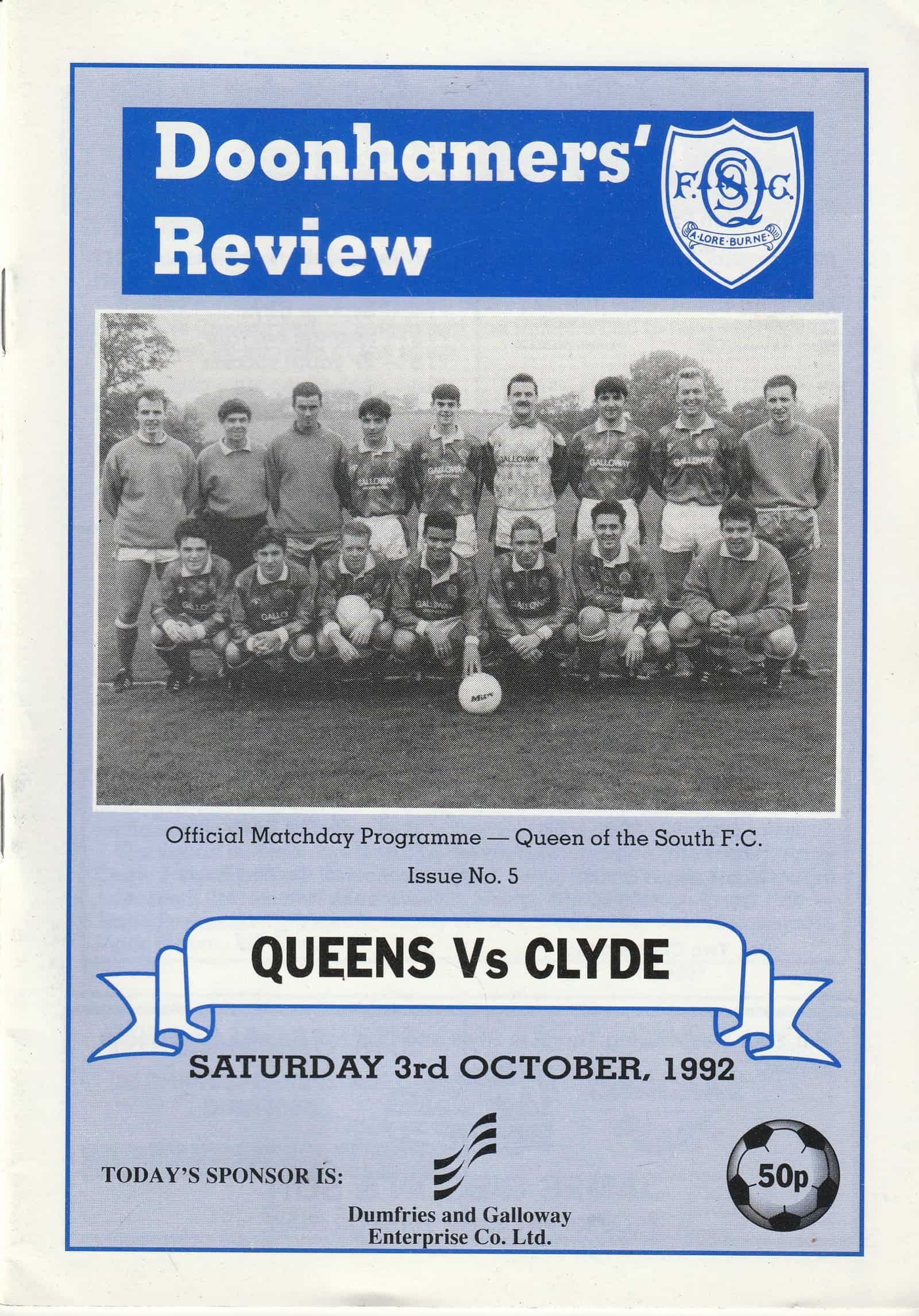 Match: Queen of the South v Clyde Competition: Scottish League Division 2 Date: 03-Oct-1992 Comments: Rating: 4 Condition: Very good Weight in grams: 80