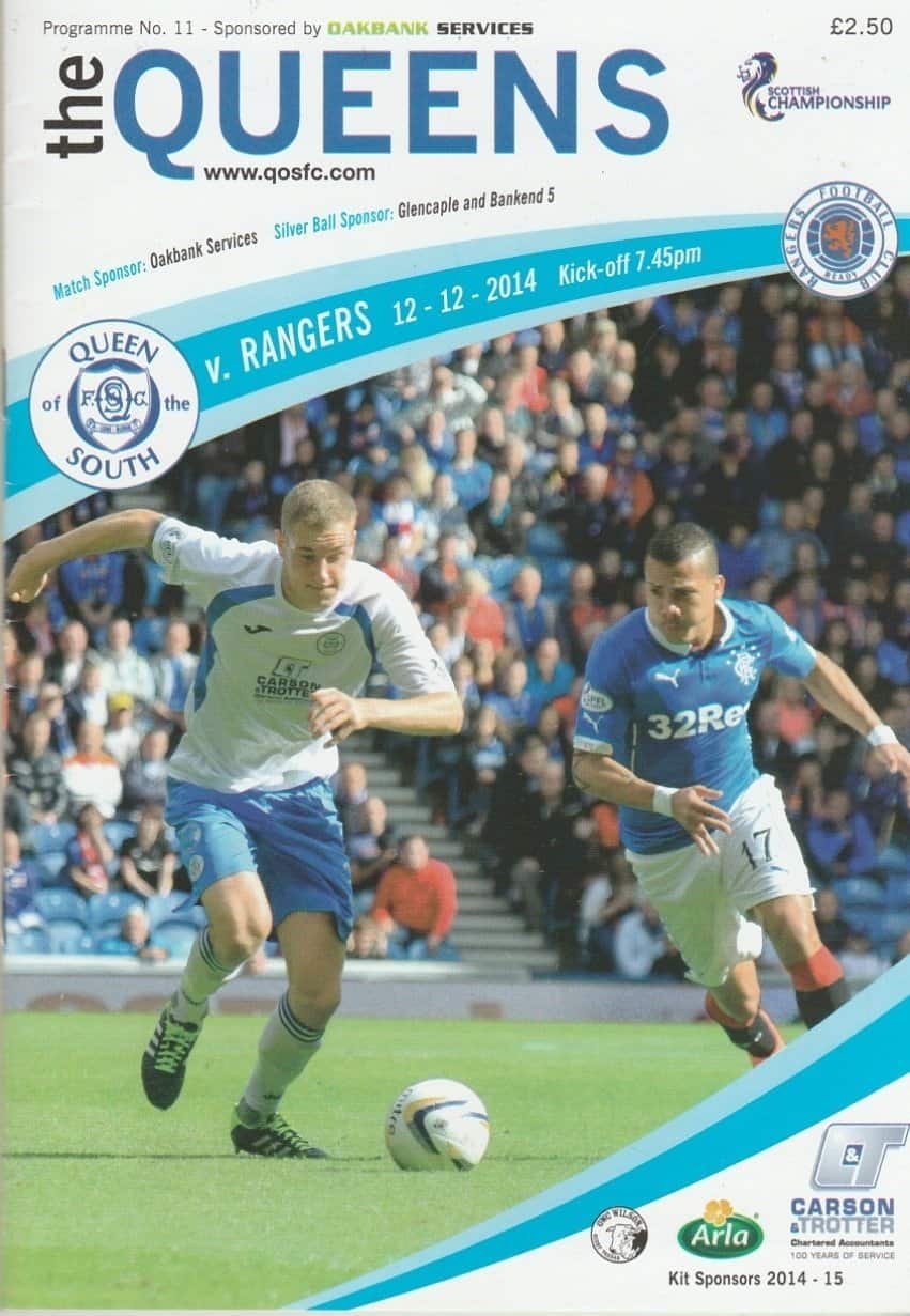 Match: Queen of the South v Glasgow Rangers Competition: Scottish League Championship Date: 12-Dec-2014 Comments: Rating: 5 Condition: Excellent Weight in grams: 200