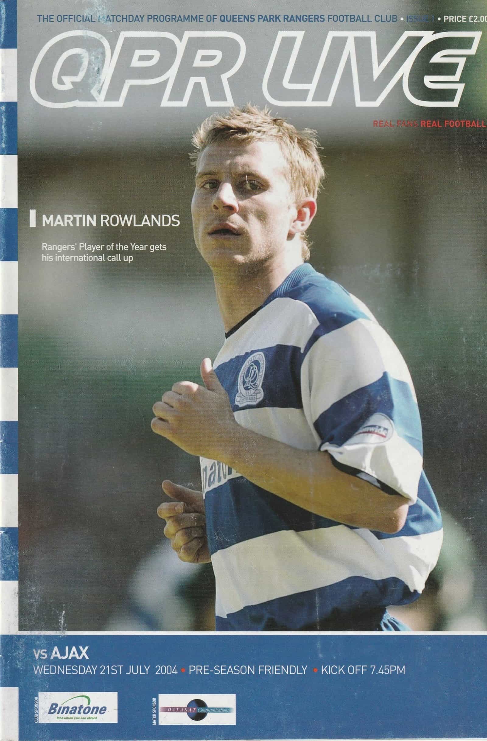 Match: Queens Park Rangers v Ajax Competition: Friendly Date: 21-Jul-2004 Comments: Rating: 4 Condition: Slight print imperfection on cover Weight in grams: 100