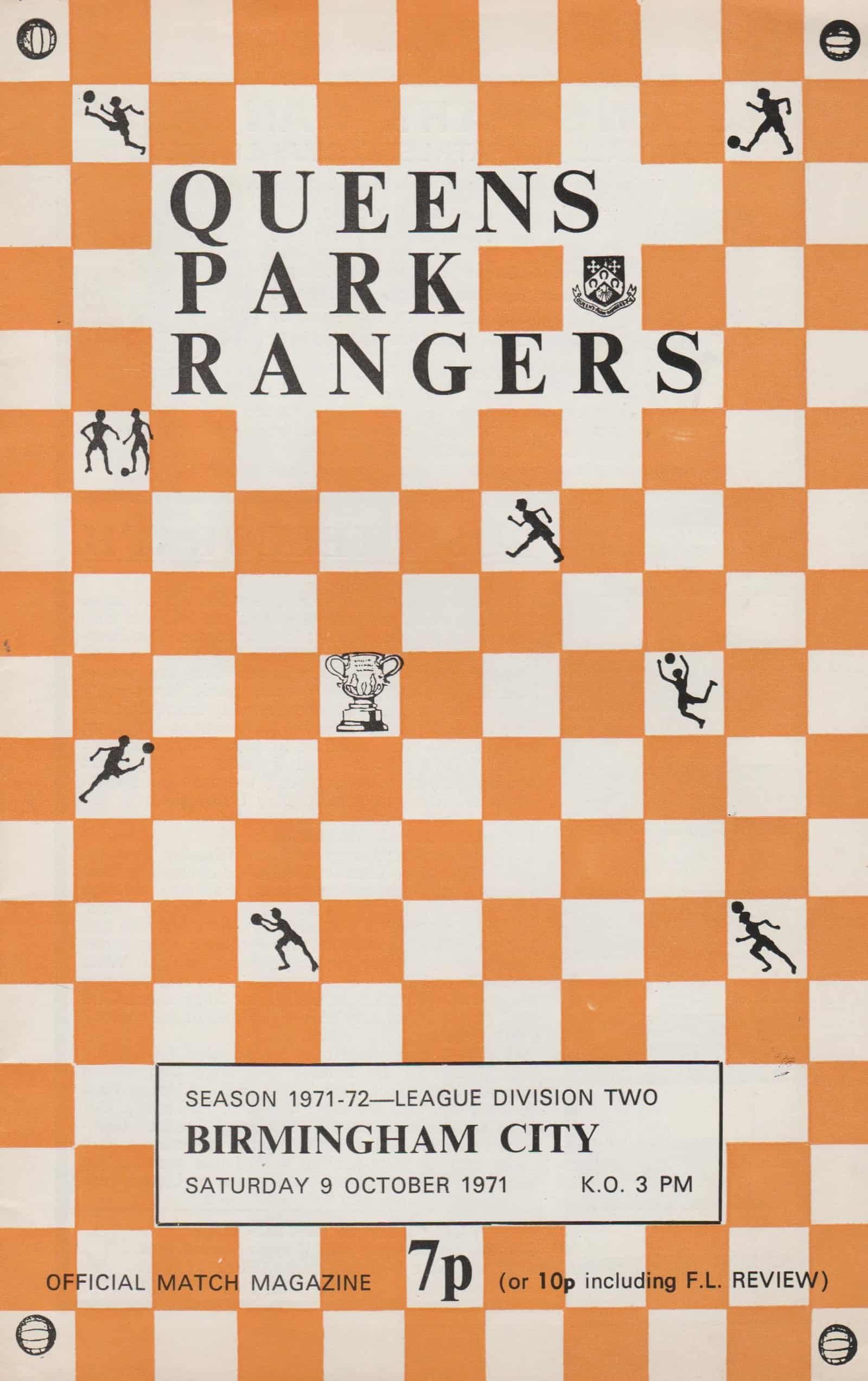 Match: Queens Park Rangers v Birmingham City Competition: League Division 1 Date: 09-Oct-1971 Comments: Rating: 4 Condition: Very good Weight in grams: 60