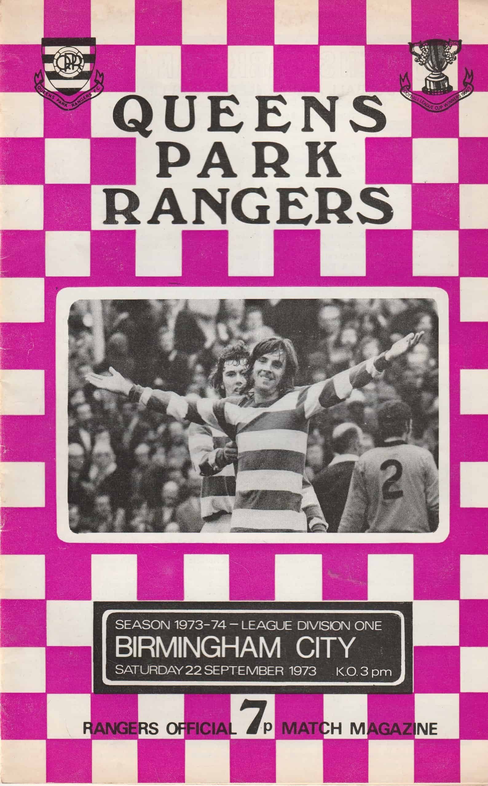 Match: Queens Park Rangers v Birmingham City Competition: League Division 1 Date: 22-Sep-1973 Comments: Rating: 4 Condition: Very good Weight in grams: 60