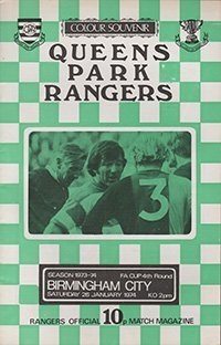 Match: Queens Park Rangers v Birmingham City Competition: FA Cup 4th Round Date: 26-01-1974 Comments: Rating: 4 Condition: Very good Weight in grams: 60