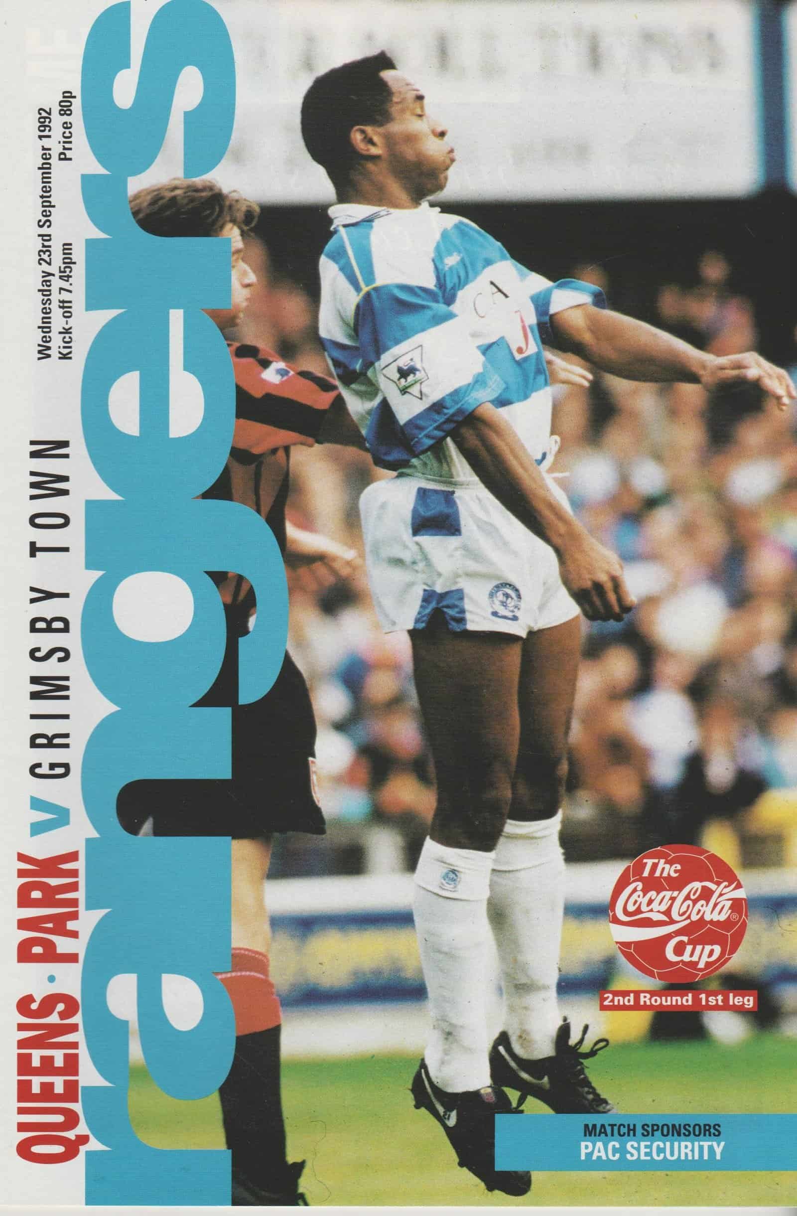 Match: Queens Park Rangers v Grimsby Town Competition: League Cup 2nd Round 1st leg Date: 23-Sep-1992 Comments: Rating: 4 Condition: Very good Weight in grams: 60