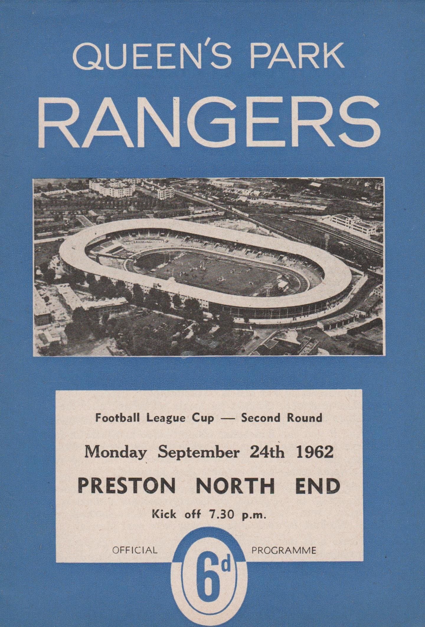 Match: Queens Park Rangers v Preston North End Competition: League Cup 2nd Round Date: 24-Sep-1962 Comments: Rating: 4 Condition: Very good Weight in grams: 40