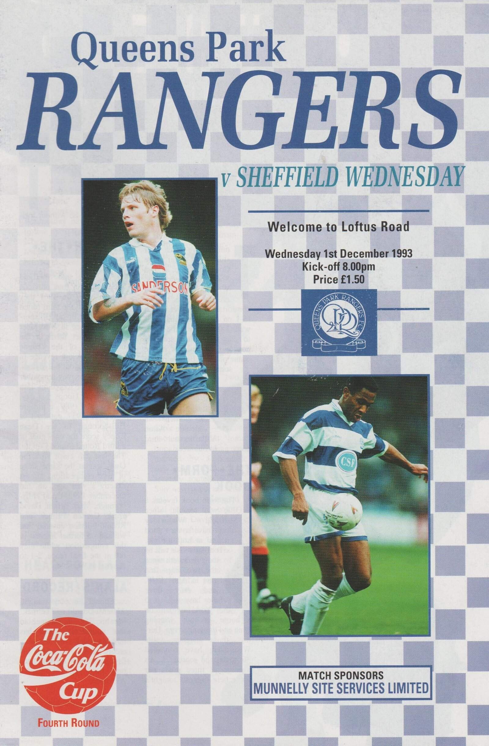Match: Queens Park Rangers v Sheffield Wednesday Competition: Premier League Date: 01-Dec-1993 Comments: Rating: 4 Condition: Very Good Weight in grams: 100