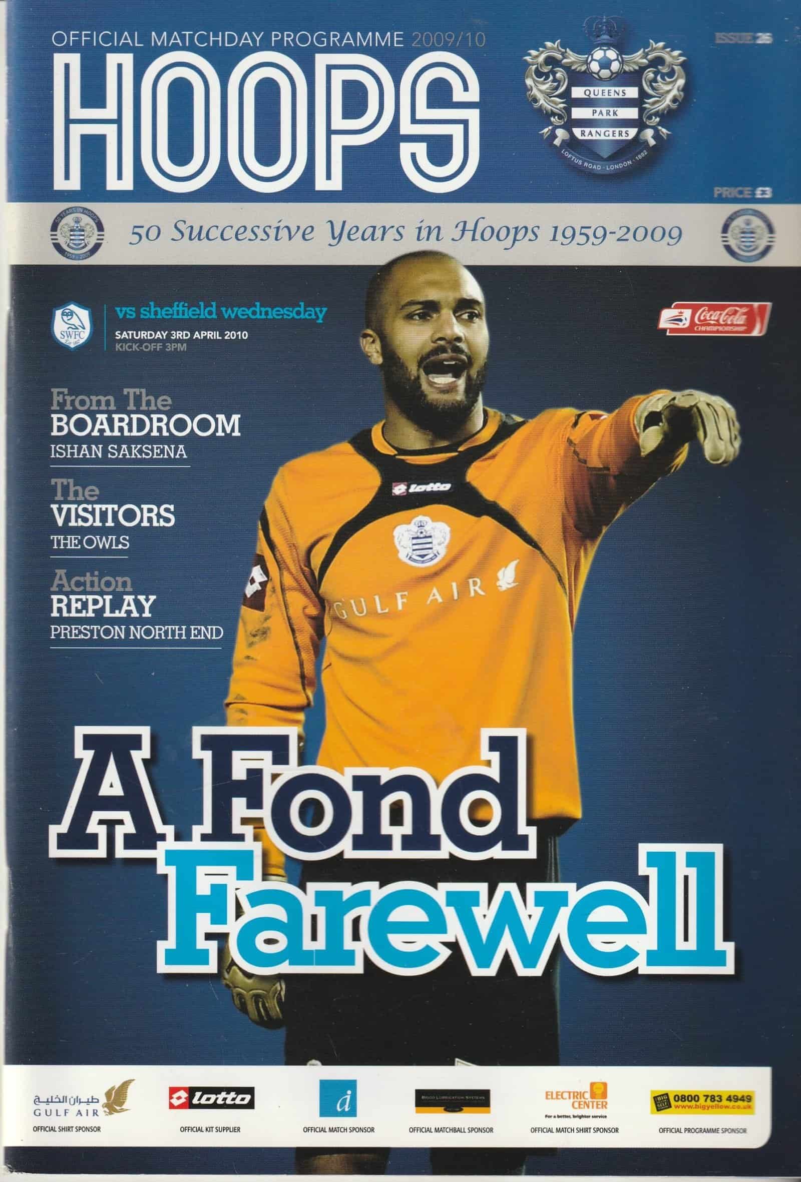 Match: Queens Park Rangers v Sheffield Wednesday Competition: Coca Cola Championship Date: 03-Apr-2010 Comments: Rating: 4 Condition: Very good Weight in grams: 260