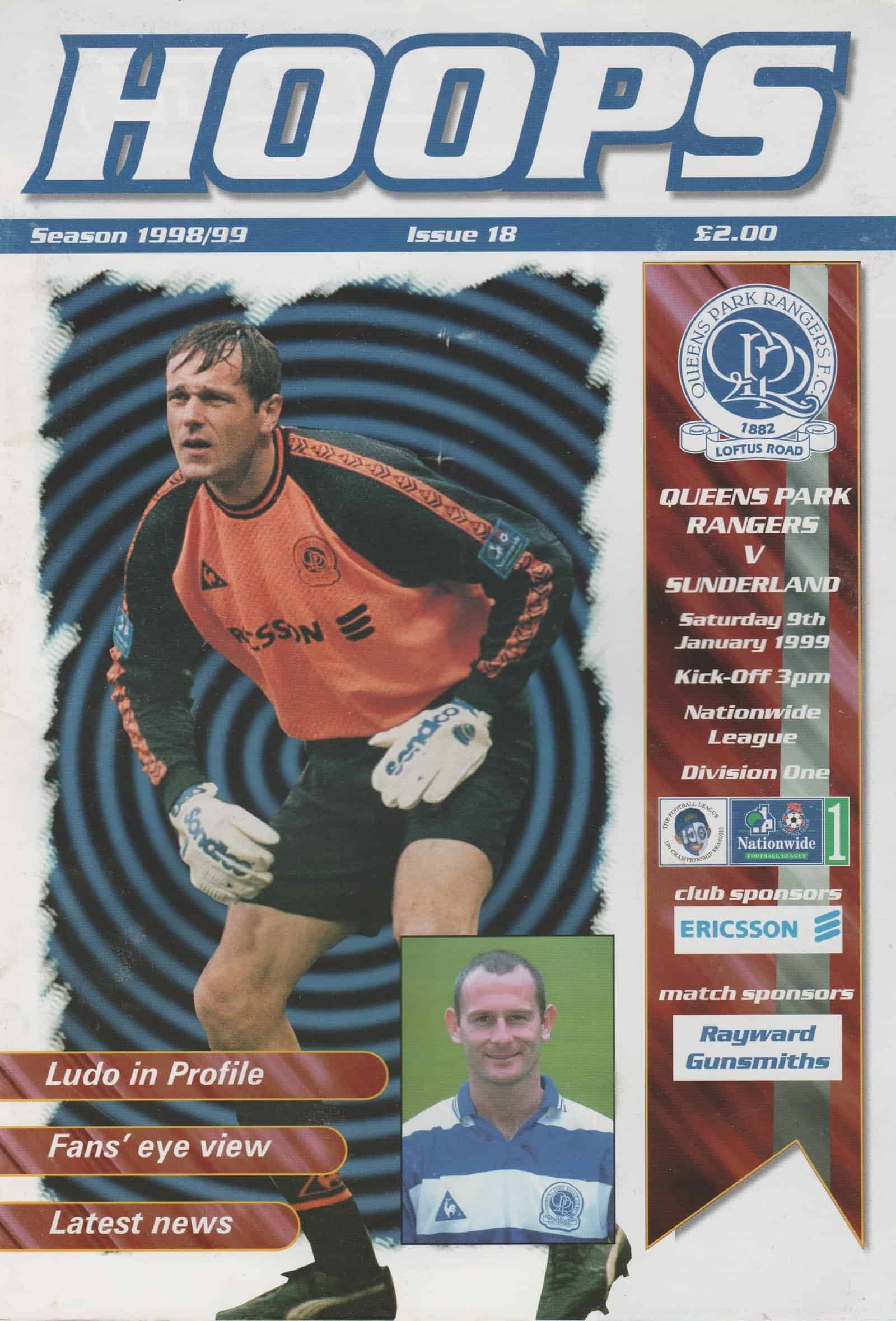 Match: Queens Park Rangers v Sunderland Competition: Nationwide League Division 1 Date: 09-Jan-1999 Comments: Rating: 4 Condition: Faint cover fold Weight in grams: 100