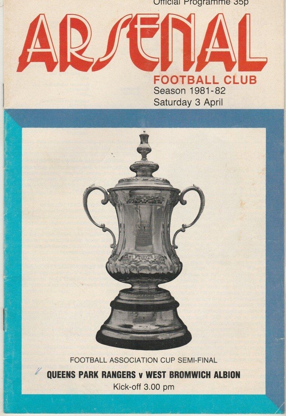 Match: Queens Park Rangers v West Bromwich Albion Competition: FA Cup Semi Final Date: 03-Apr-1982 Comments: Rating: 4 Condition: Slight mark on cover Weight in grams: 100
