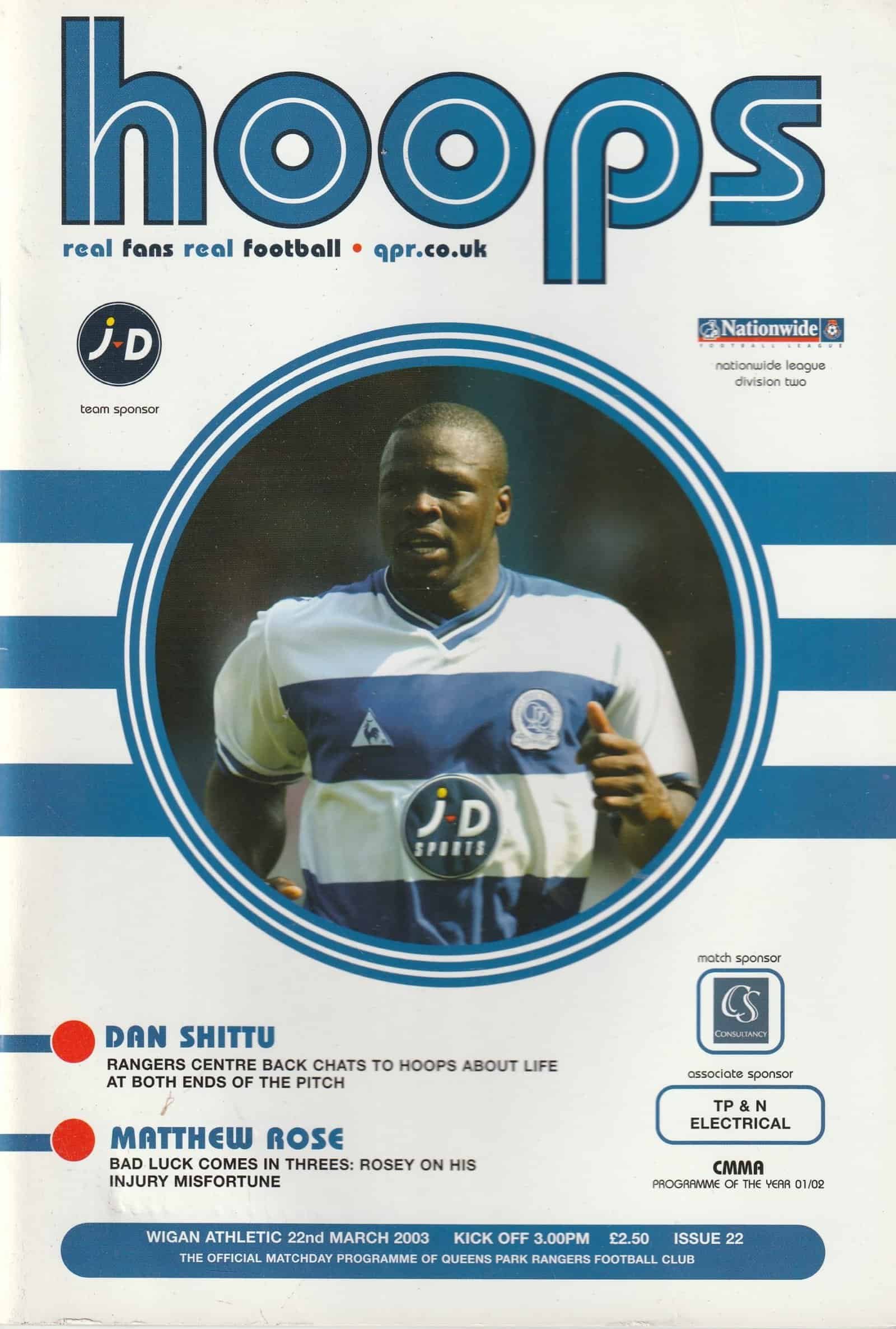 Match: Queens Park Rangers v Wigan Athletic Competition: Nationwide League Division 2 Date: 22-Mar-2003 Comments: Rating: 4 Condition: Very good Weight in grams: 140
