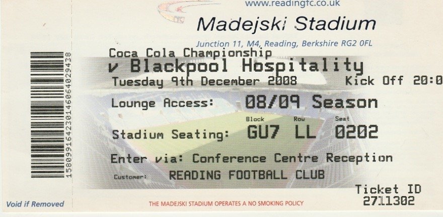 Match: Reading v Blackpool Competition: Coca Cola Championship Date: 09-12-2008 Comments: Rating: 4 Condition: Very good Weight in grams: 10