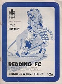 Match: Reading v Brighton and Hove Albion Competition: League Division 3 Date: 03-11-1976 Comments: Rating: 3 Condition: Rusty staples, corner fold Weight in grams: 60