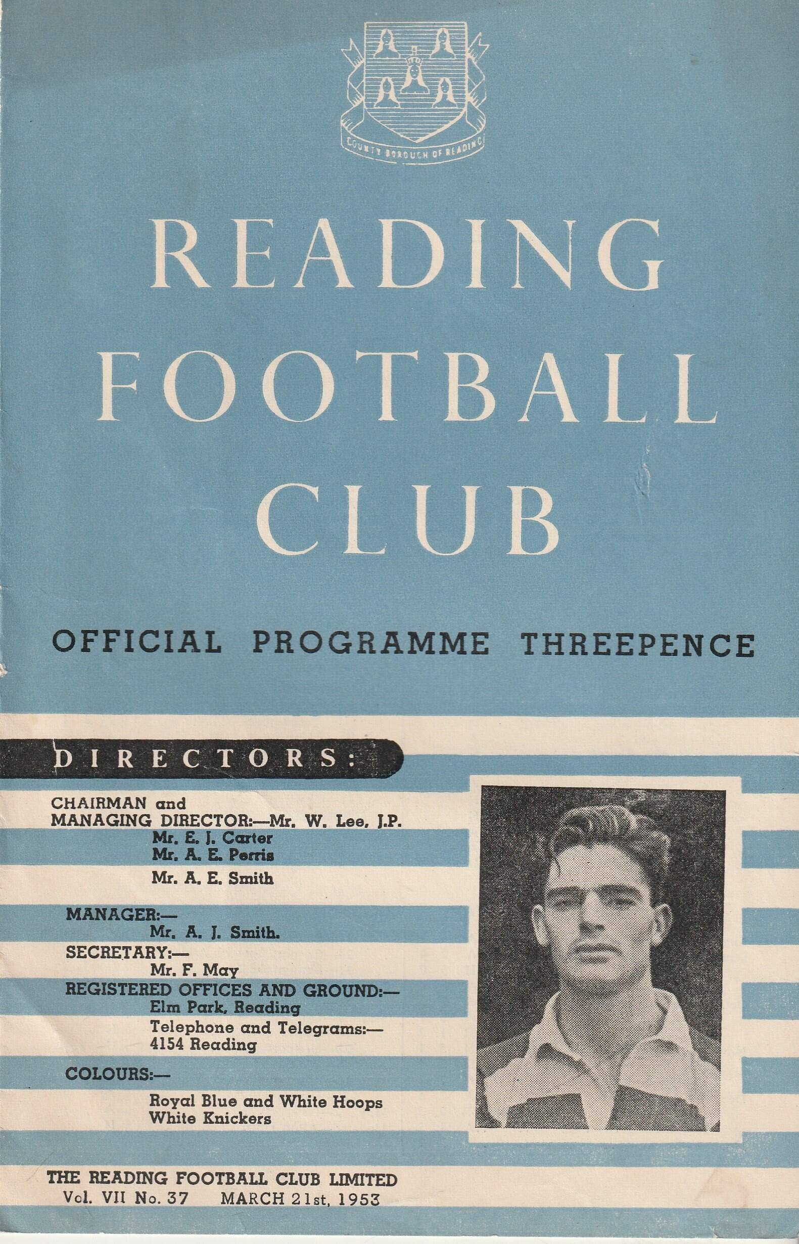 Match: Reading v Bristol Rovers Competition: League Division 3 South Date: 21-Mar-1953 Comments: Rating: 4 Condition: Good Weight in grams: 60