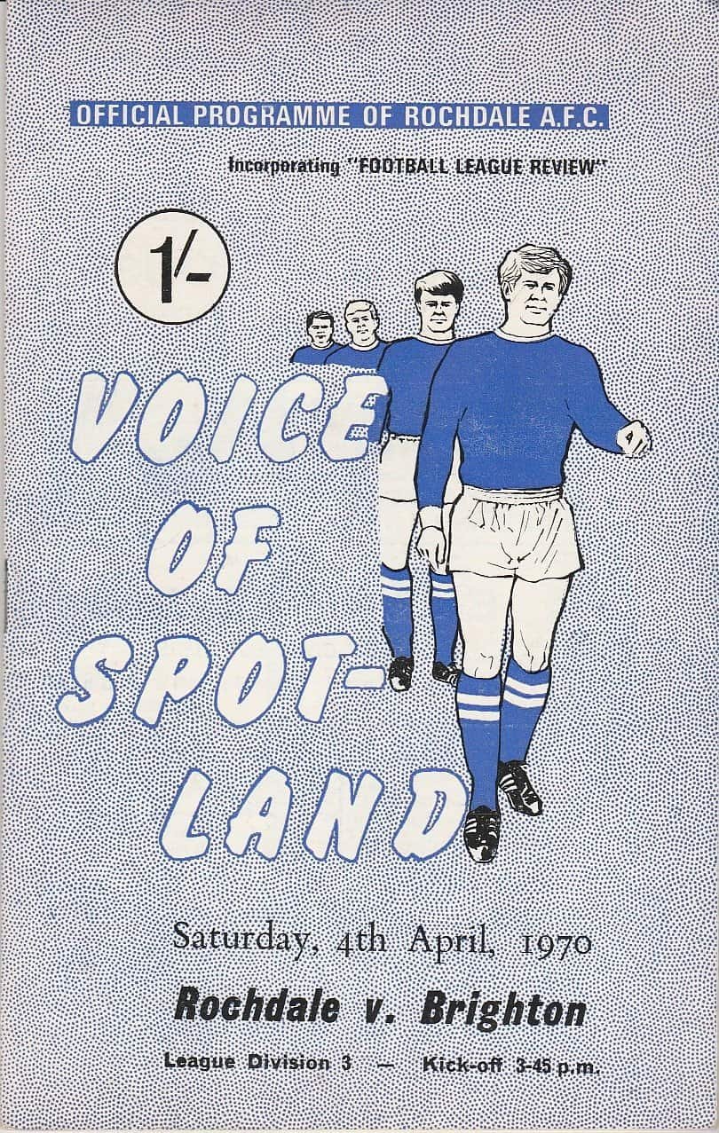 Match: Rochdale v Brighton and Hove Albion Competition: League Division 3 Date:04-Apr-1970 Comments: Rating: 4 Condition: Good Weight in grams: 100