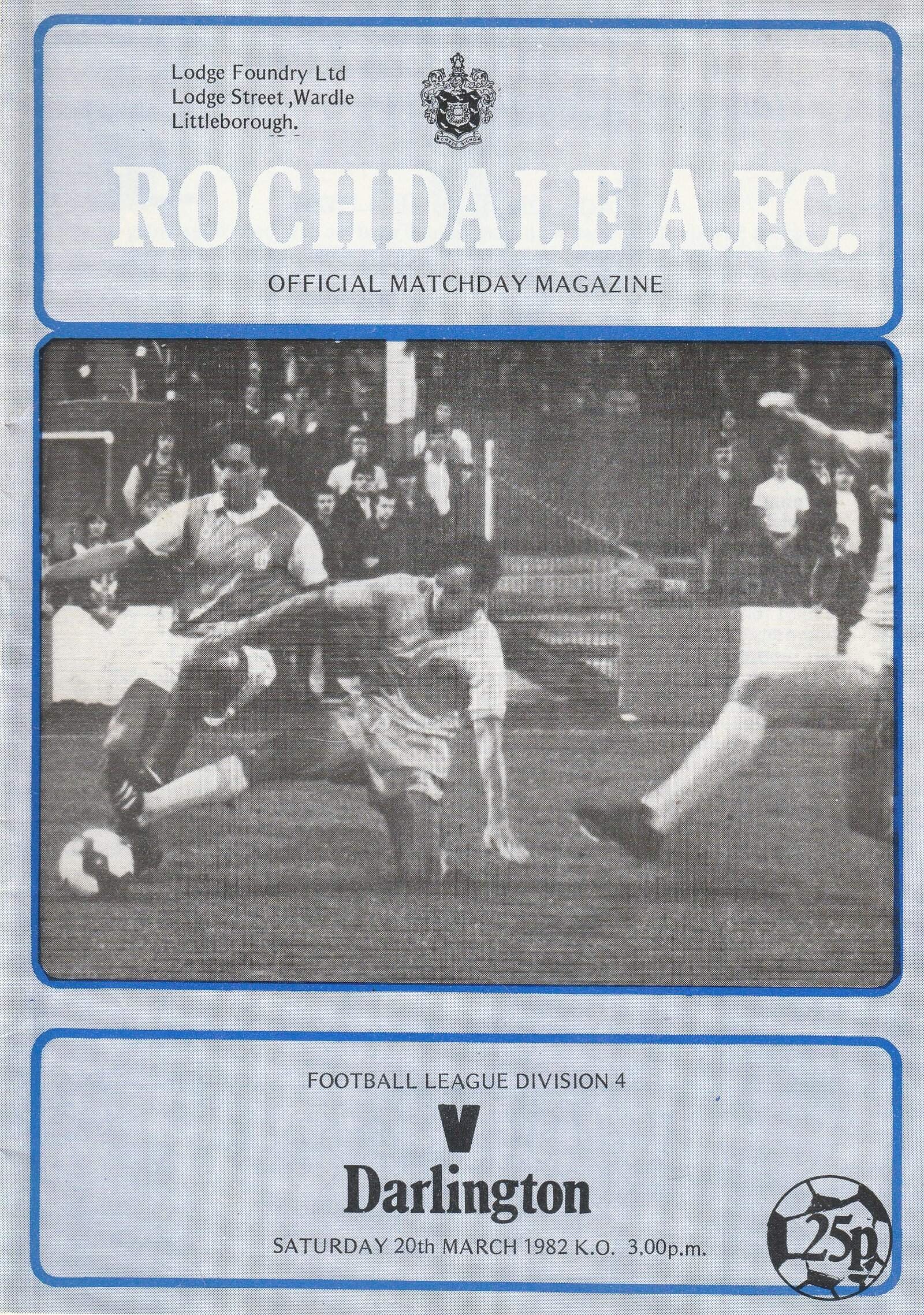 Match: Rochdale v Darlington Competition: League Division 4 Date: 20-Mar-1982 Comments: Rating: 3 Condition: Team changes Weight in grams: 40