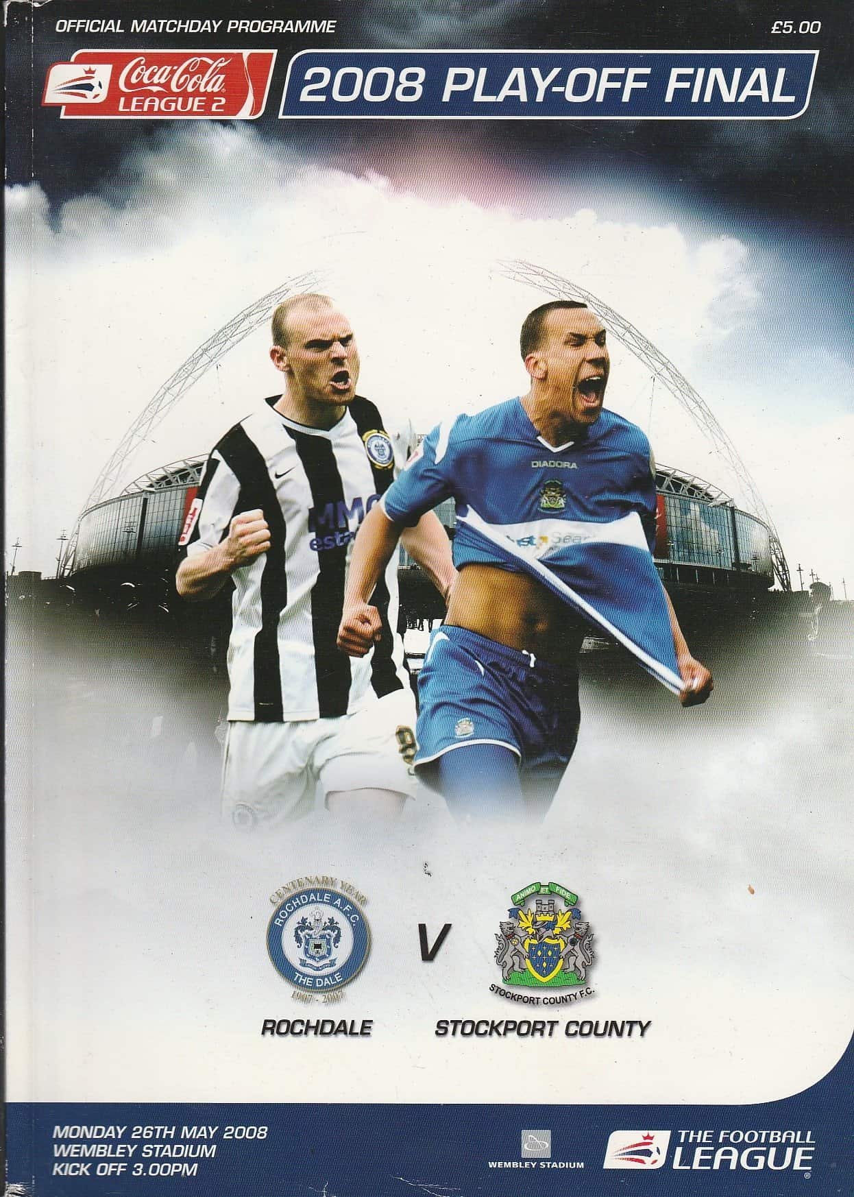 Match: Rochdale v Stockport County Competition: League 2 Play off Final Date: 26-May-2008 Comments: Rating: 3 Condition: Scuff on edge of cover, handling wear to cover Weight in grams: 400