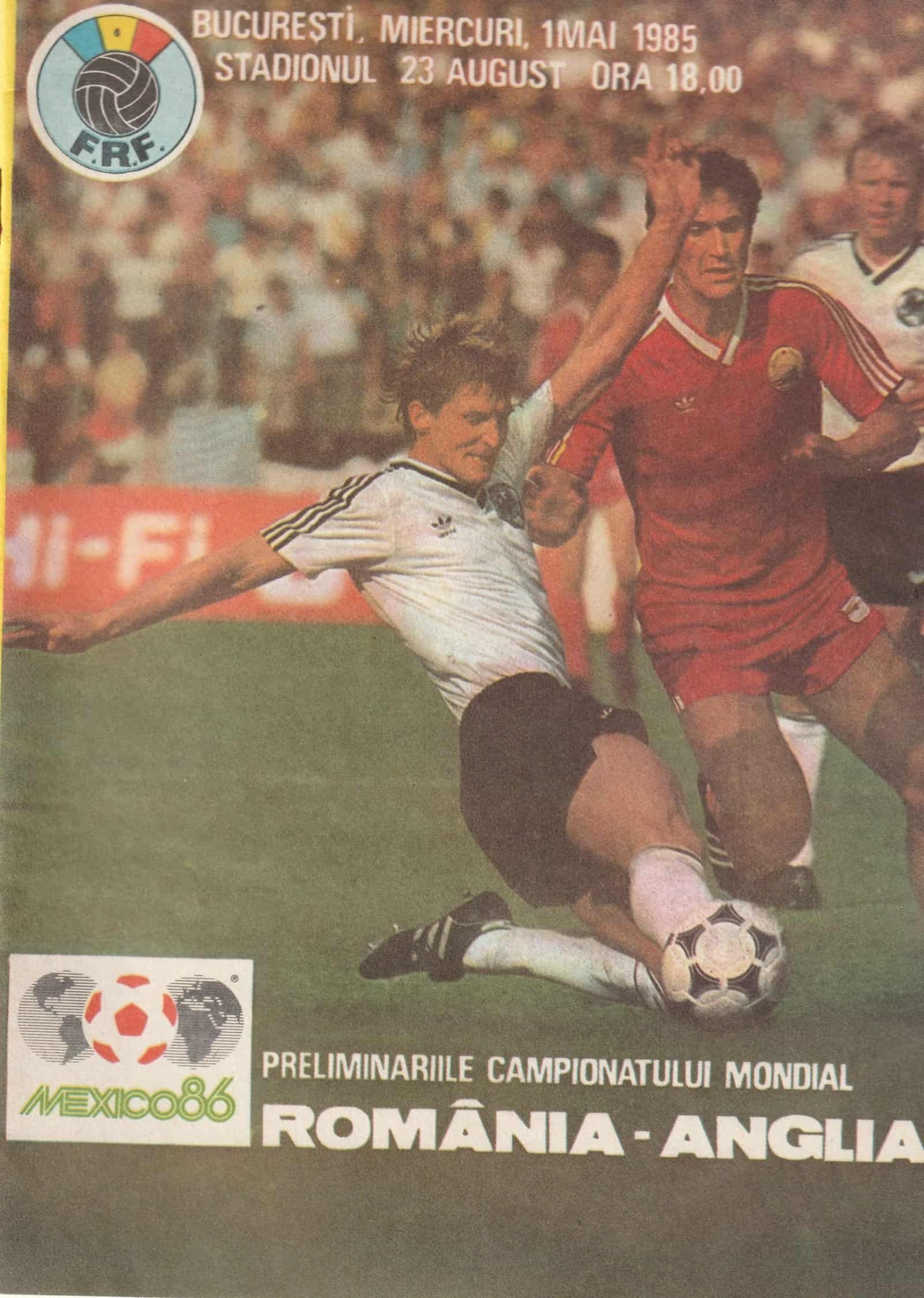 Match: Romania v England Competition: World Cup Qualifying Round Group 3 Date: 01-May-1985 Comments: Rating: 4 Condition: Very good Weight in grams: 160