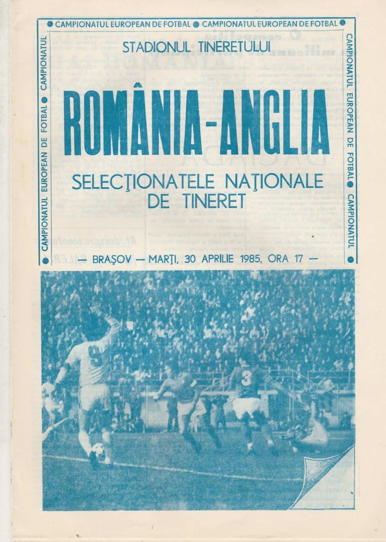 Match:Romania v England Competition:World Cup Qualifying Round Group 3 Date: 30-Apr-1985 Comments: Rating: 4 Condition: Very good Weight in grams: 160