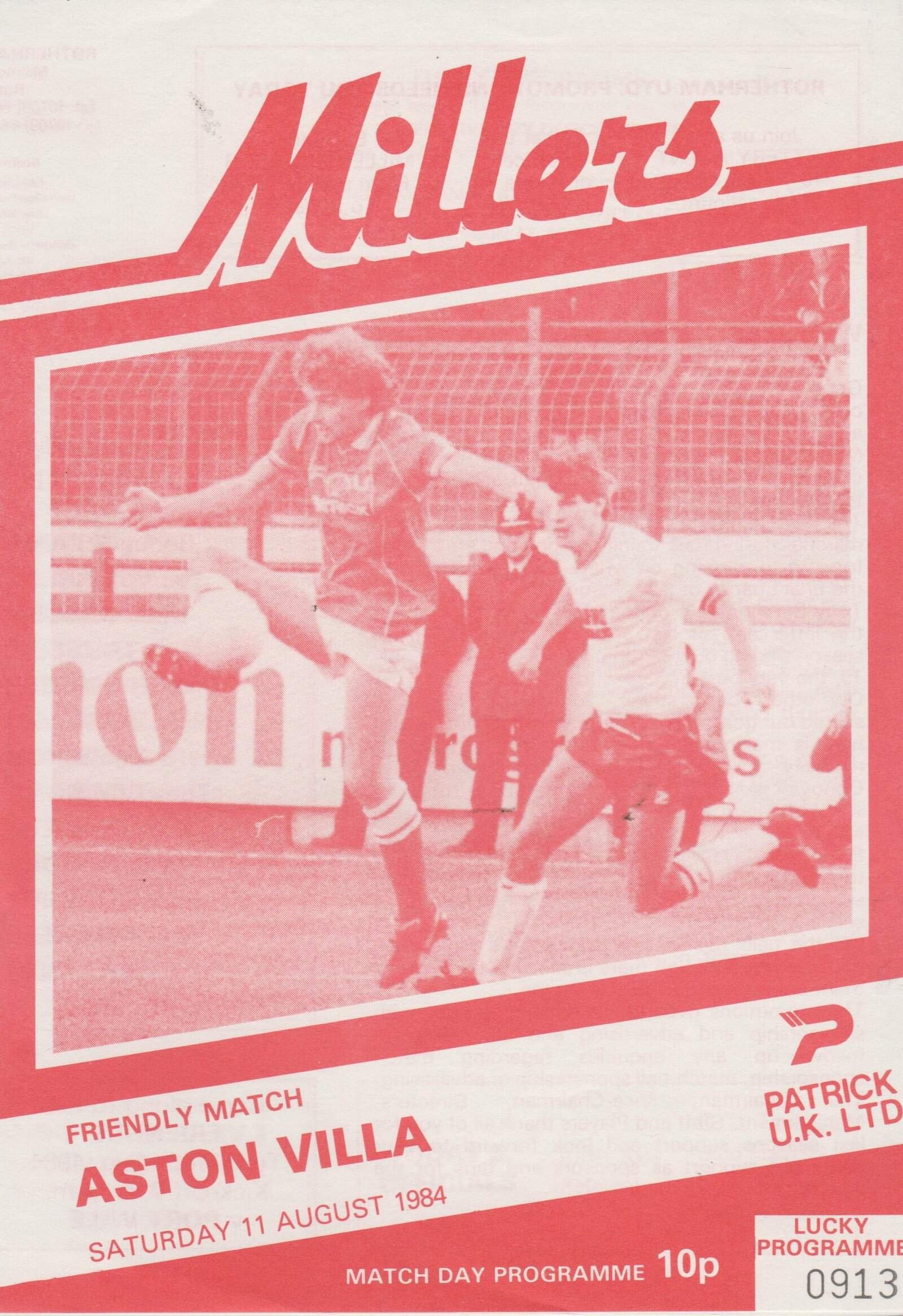 Match: Rotherham United v Aston Villa Competition: Friendly Date: 11-Aug-1984 Comments: 4 page issue Rating: 4 Condition: Very good Weight in grams:40