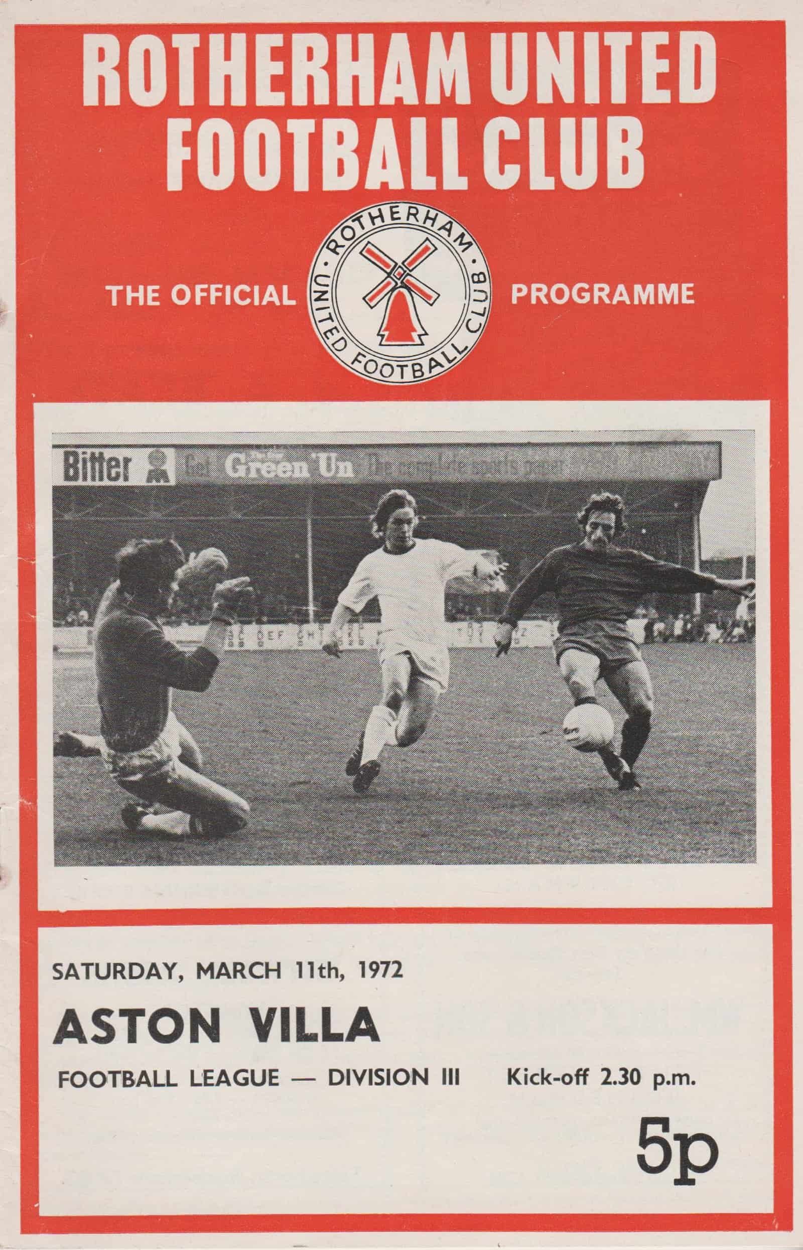 Match: Rotherham United v Aston Villa Competition: League Division 3 Date: 11-Mar-1972 Comments: Rating: 4 Condition: Very good Weight in grams: 60