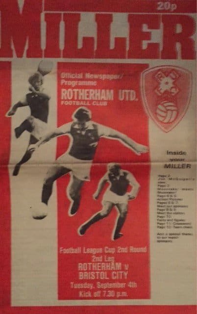 Match: Rotherham United v Bristol City Competition: League Cup 2nd Round 2nd leg Date: 04-Sep-1979 Comments: Newspaper issue Rating: 3 Condition: Fold, nicks and creases to edges, pen mark on cover Weight in grams: 100