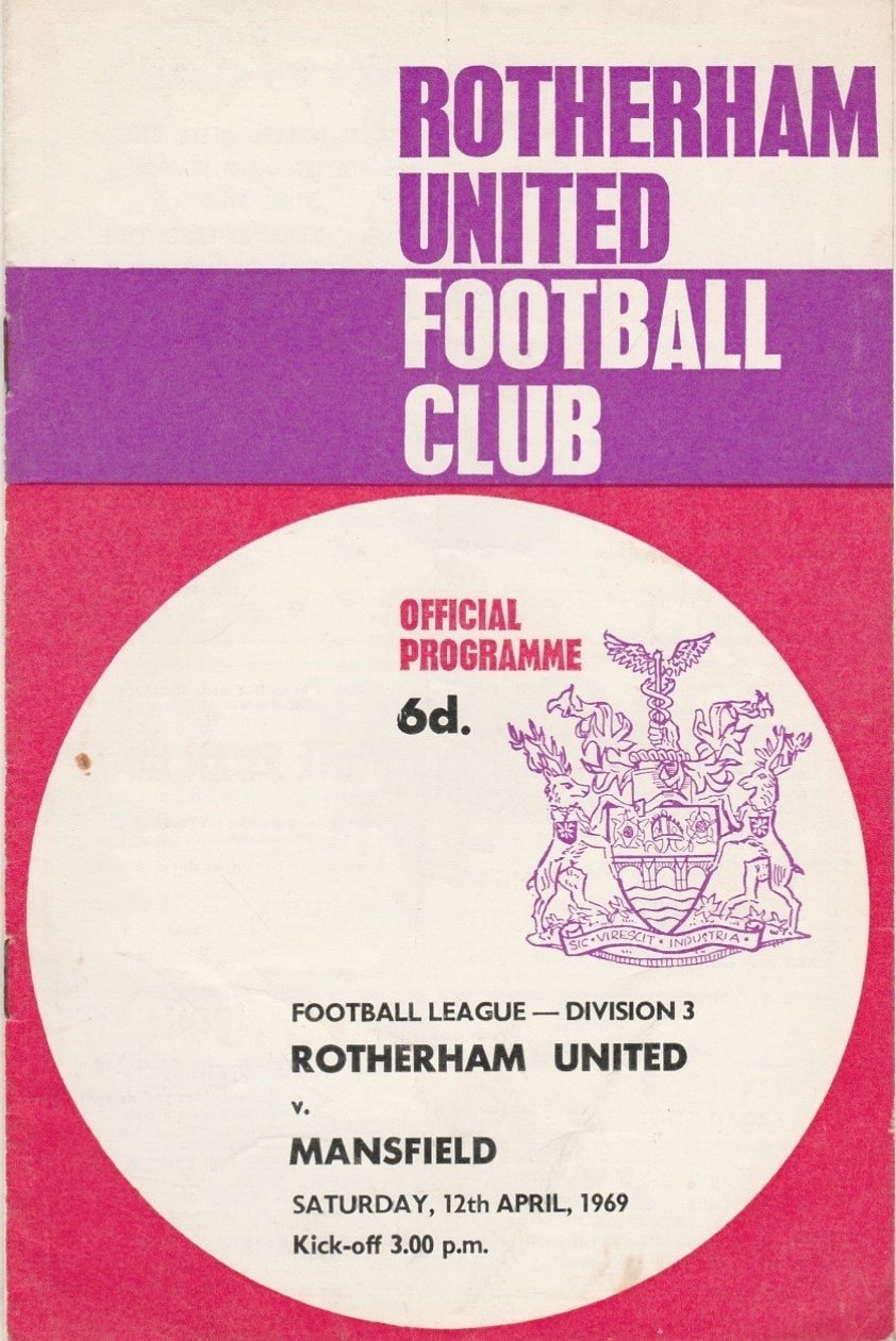 Match: Rotherham United v Mansfield Town Competition: League Division 3 Date: 12-Apr-1969 Comments: Rating: 3 Condition: Small mark on cover Weight in grams: 60