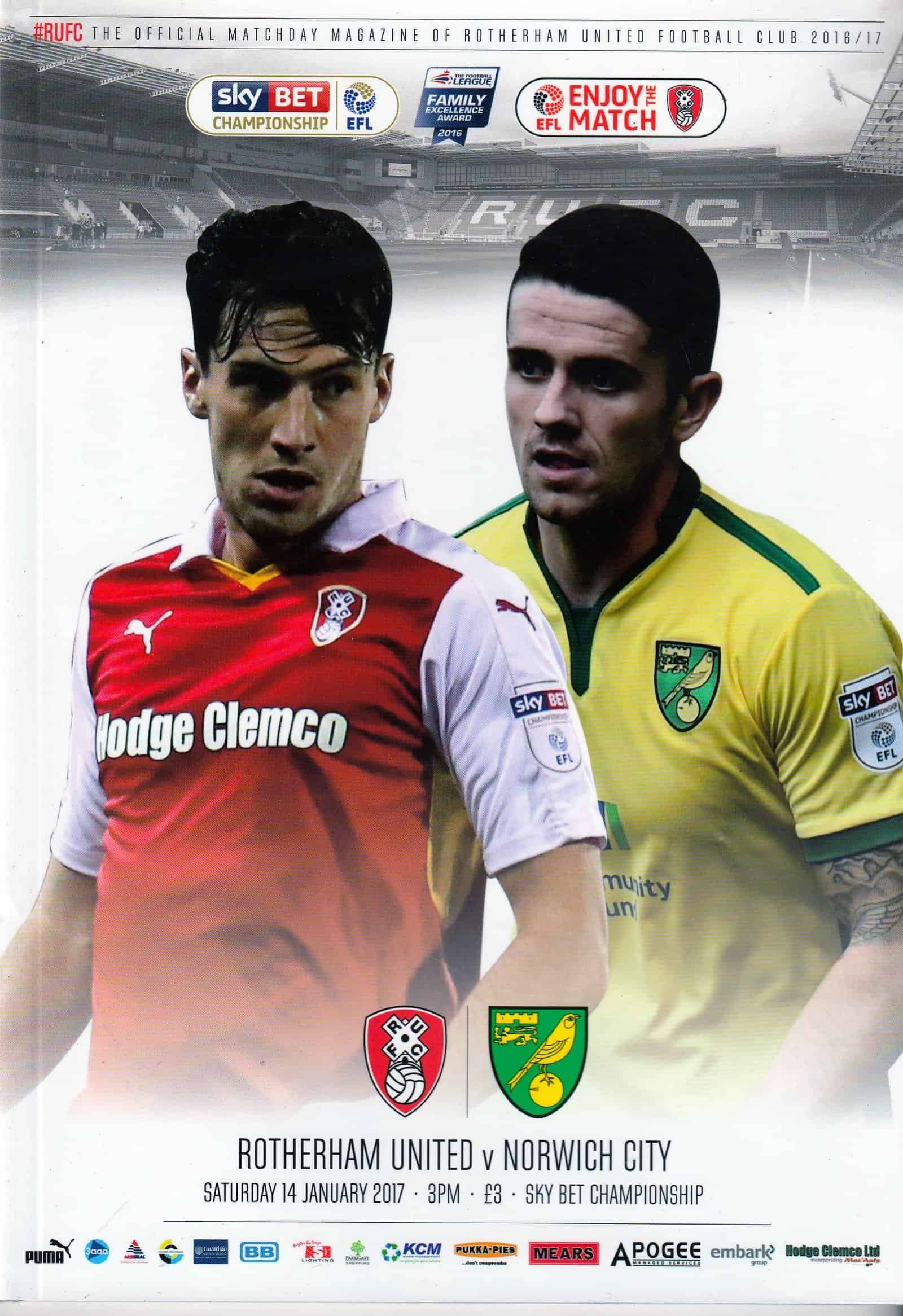 Match: Rotherham United v Norwich City Competition: League Championship Date: 14-Jan-2017 Comments: Rating: 4 Condition: Very good Weight in grams: 200