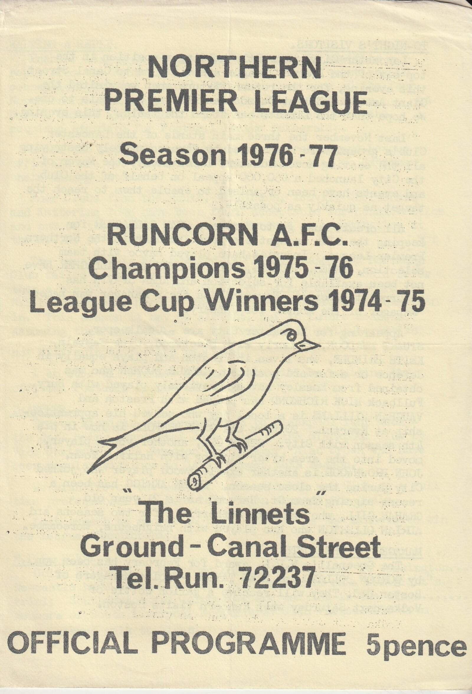 Match: Runcorn v Lancaster City Competition: Northern Premier League Date: 22-Mar-1977 Comments: 4 page issue Rating: 3 Condition: Team changes, fold Weight in grams: 60