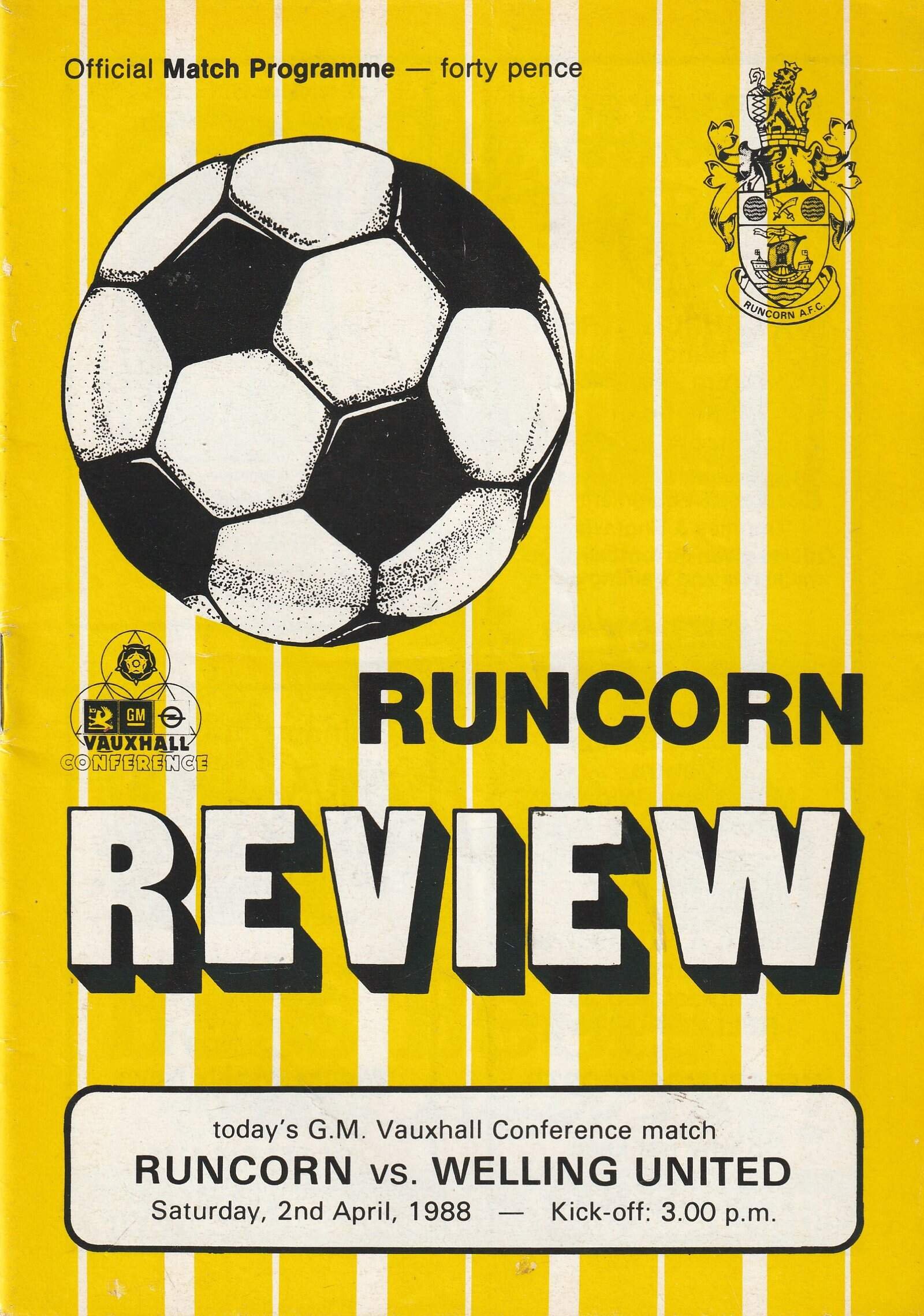 Match: Runcorn v Welling United Competition: GM Vauxhall Conference Date: 02-Apr-1988 Comments: Rating: 4 Condition: Very good Weight in grams: 100