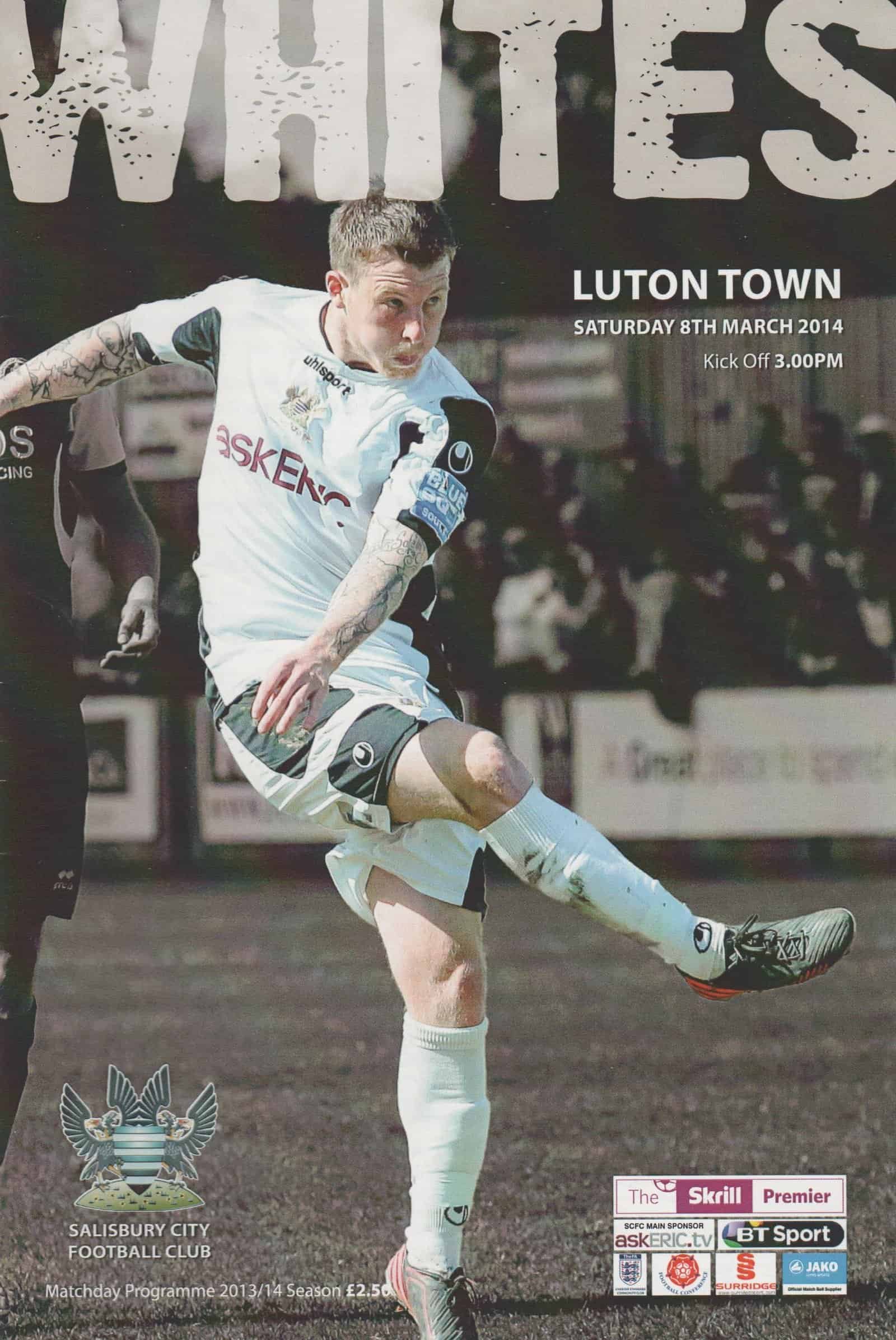 Match:Salisbury City v Luton Town Competition: Skrill Premier Date: 08-Mar-2014 Comments: Rating: 5 Condition: Excellent Weight in grams: 140