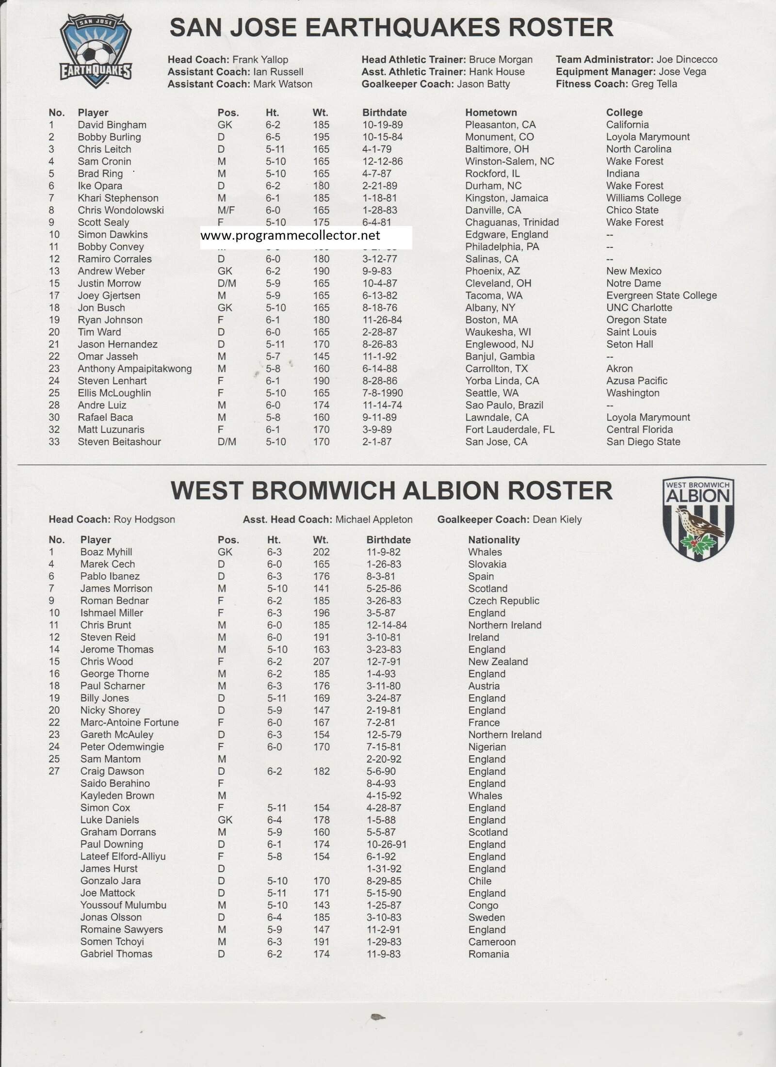 San Jose Earthquakes v West Bromwich Albion 12-July-2011