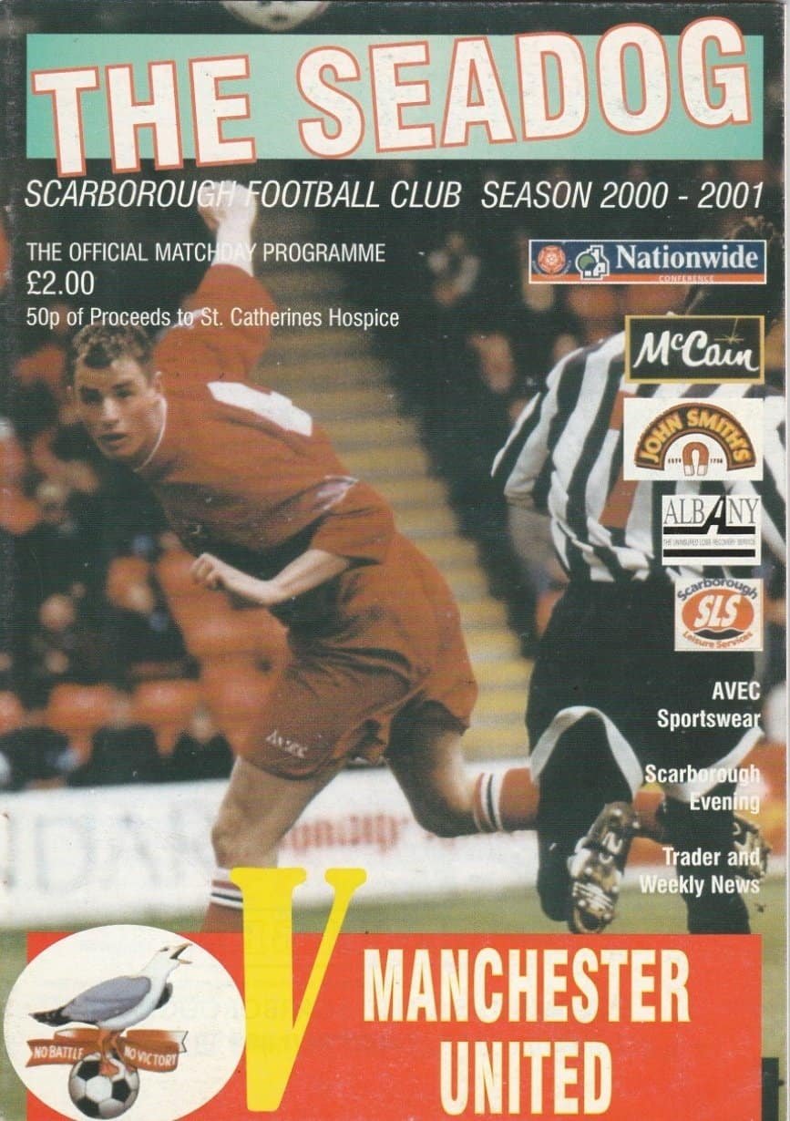 Match: Scarborough v Manchester United Competition: Friendly Date: 29-Jul-2000 Comments: Rating: 4 Condition: Very good Weight in grams: 80