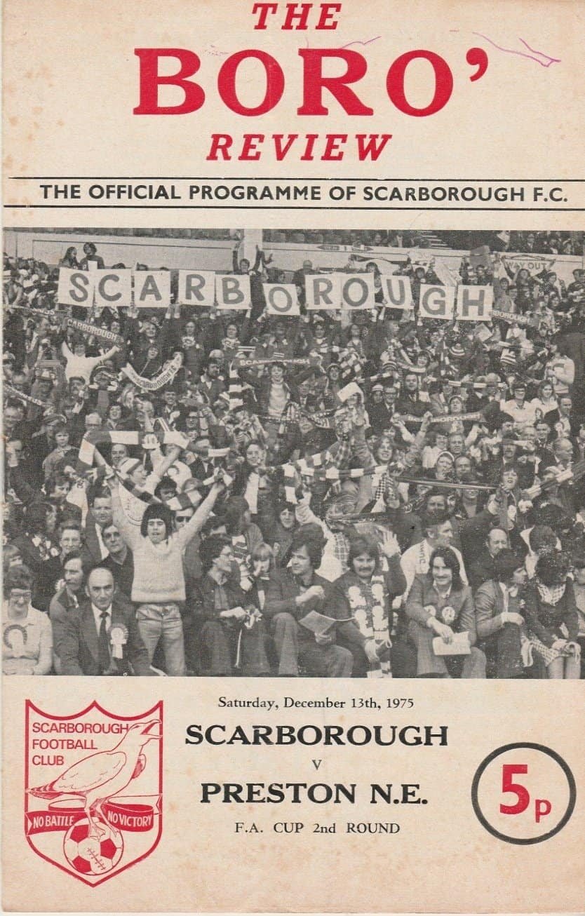 Match: Scarborough v Preston North End Competition: FA Cup 2nd Round Date: 13-Dec-1975 Comments: Rating: 3 Condition: Foxing, team changes and writing inside Weight in grams: 80