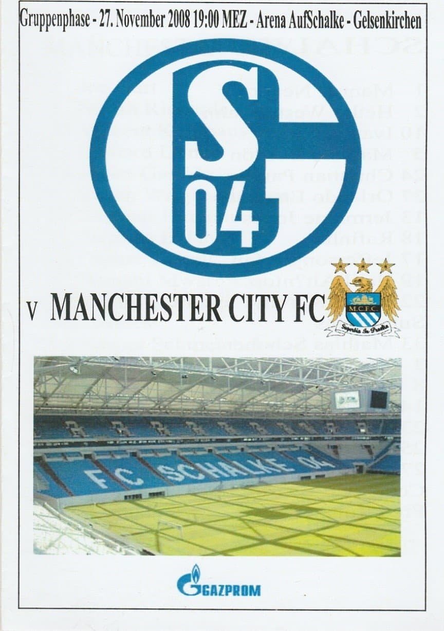 Match: Schalke 04 v Manchester City Competition: UEFA Cup Group A Date: 27-Nov-2008 Comments: 4 page unofficial issue Rating: 4 Condition: Very good Weight in grams: 40