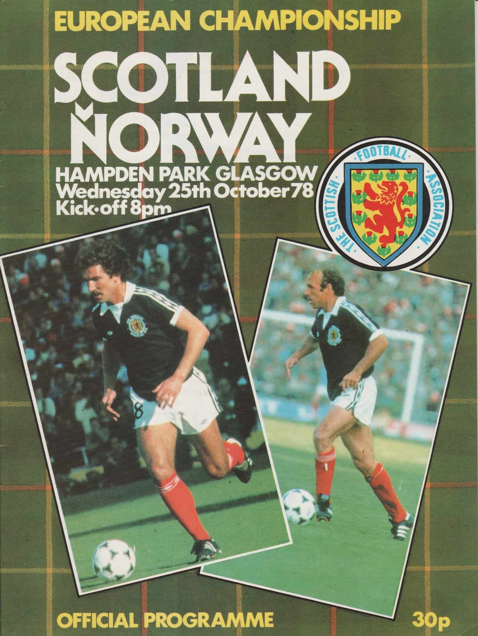 Match: Scotland v Norway Competition: European Championship Qualifying Round Group 2 Date: 25-Oct-1978 Comments: Rating: 4 Condition: Very good Weight in grams: 100