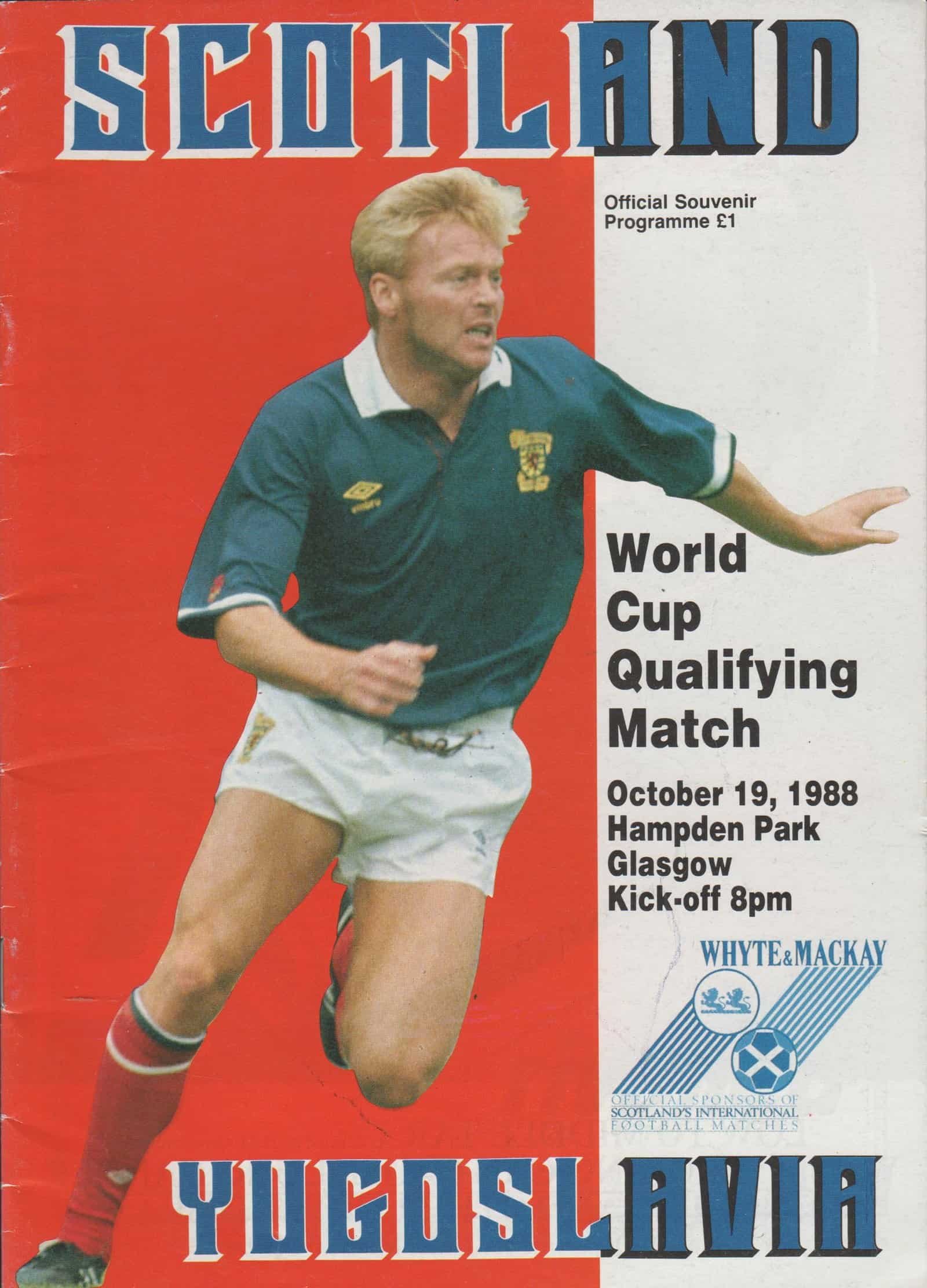 Match: Scotland v Yugoslavia Competition: World Cup Qualifying Group 5 Date: 19-Oct-1988 Comments: Rating: 4 Condition: Very good Weight in grams: 100