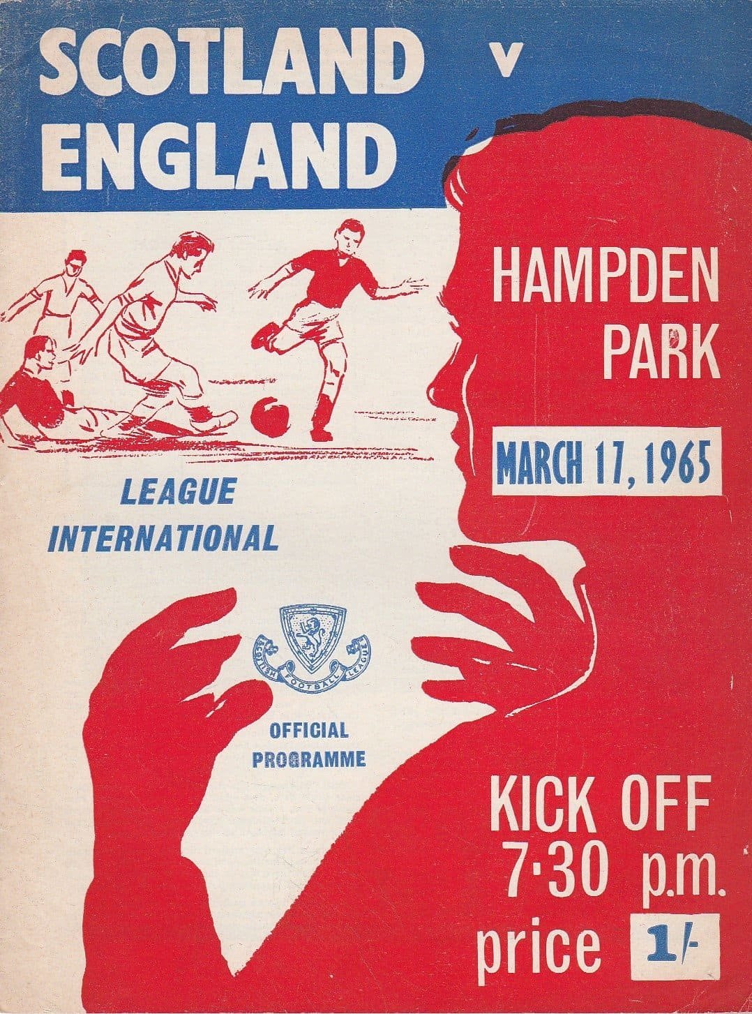 Match: Scottish League v English League Competition: Inter League match Date: 17-Mar-1965 Comments: Rating: 4 Condition: Very good Weight in grams: 100