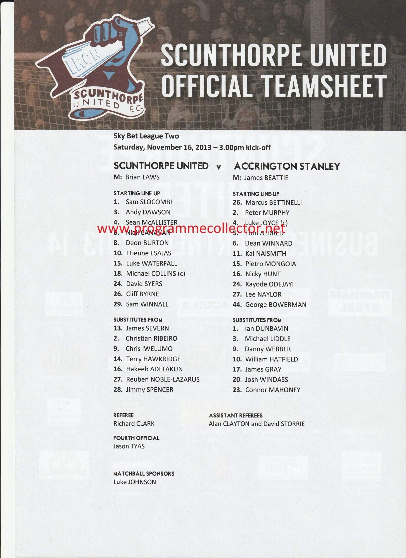 Scunthorpe United v Accrington Stanley 16-Nov-2013