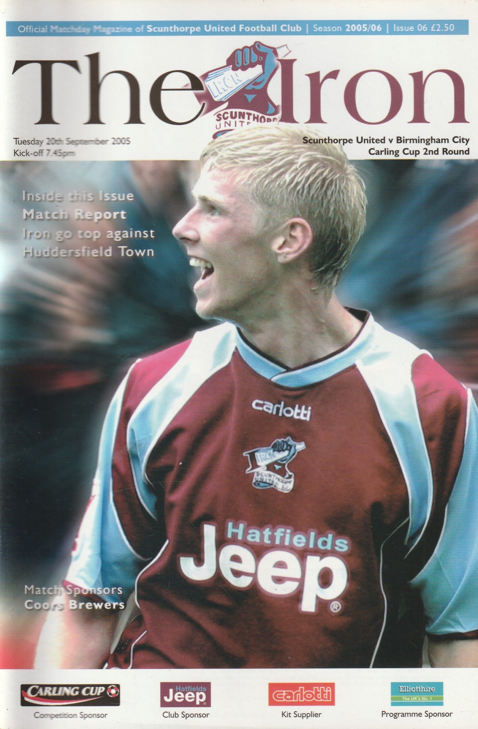 Match: Scunthorpe United v Birmingham City Competition: League Cup 2nd Round Date: 20-Sep-2005 Comments: Rating: 4 Condition: Very good Weight in grams: 100