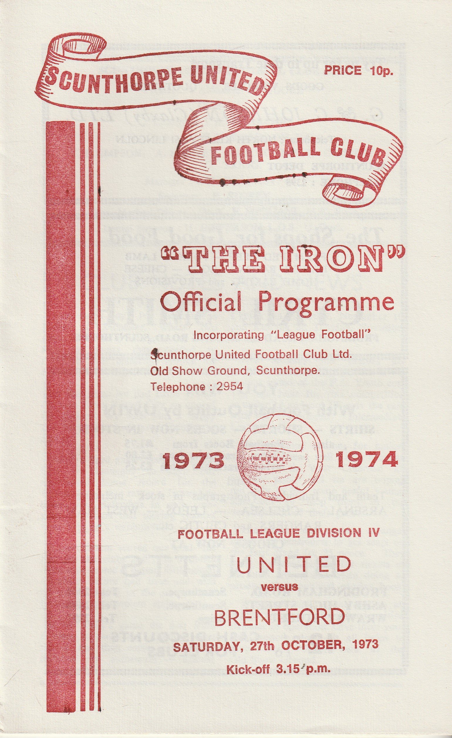 Match: Scunthorpe United v Brentford Competition: League Division 4 Date: 27-Oct-1973 Comments: Rating: 4 Condition: Very good, slight marks on cover Weight in grams: 40