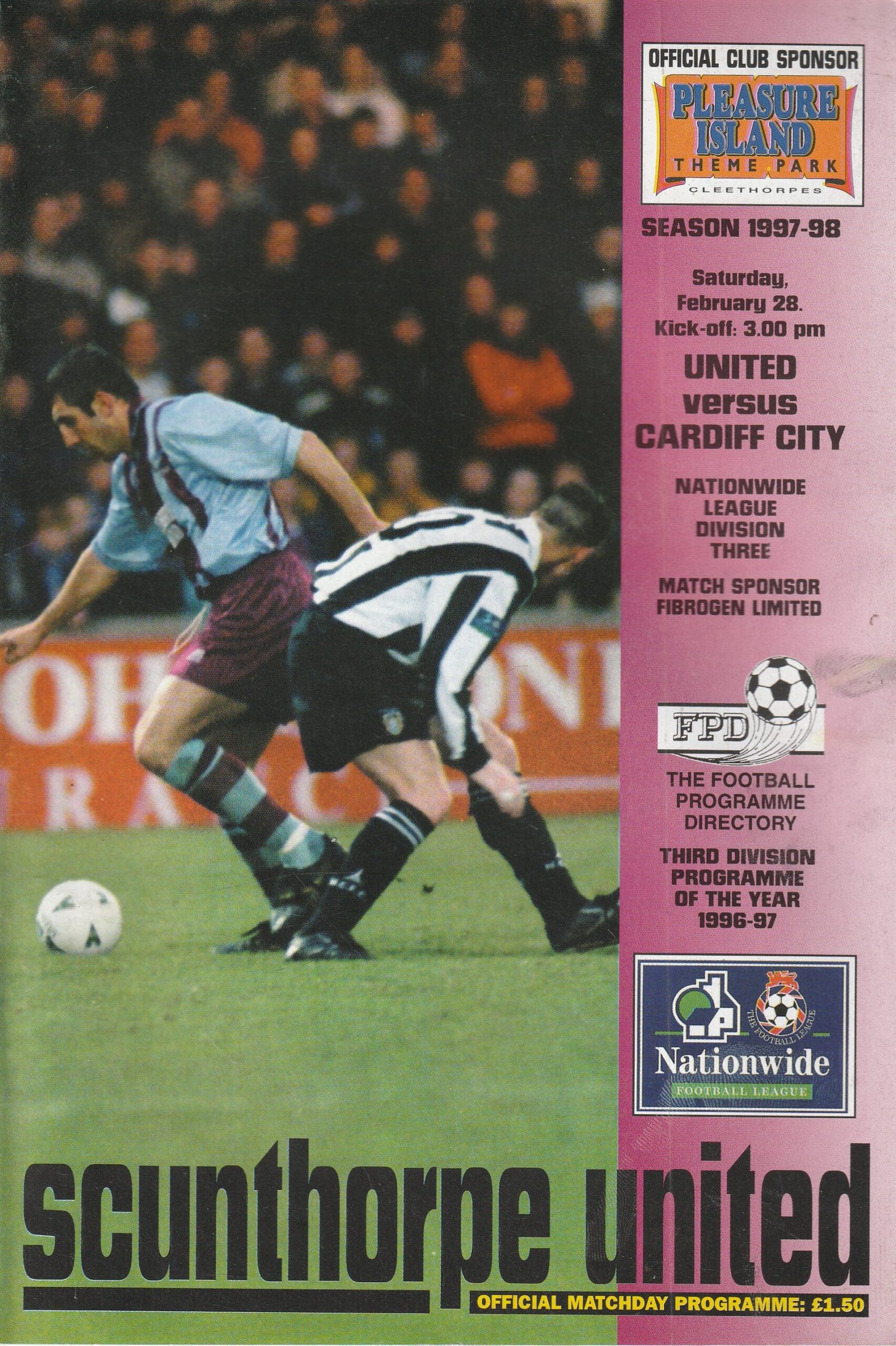 Match: Scunthorpe United v Cardiff City Competition: League Division 3 Date: 28-Feb-1998 Comments: Rating: 4 Condition: Slight mark on cover Weight in grams: 160