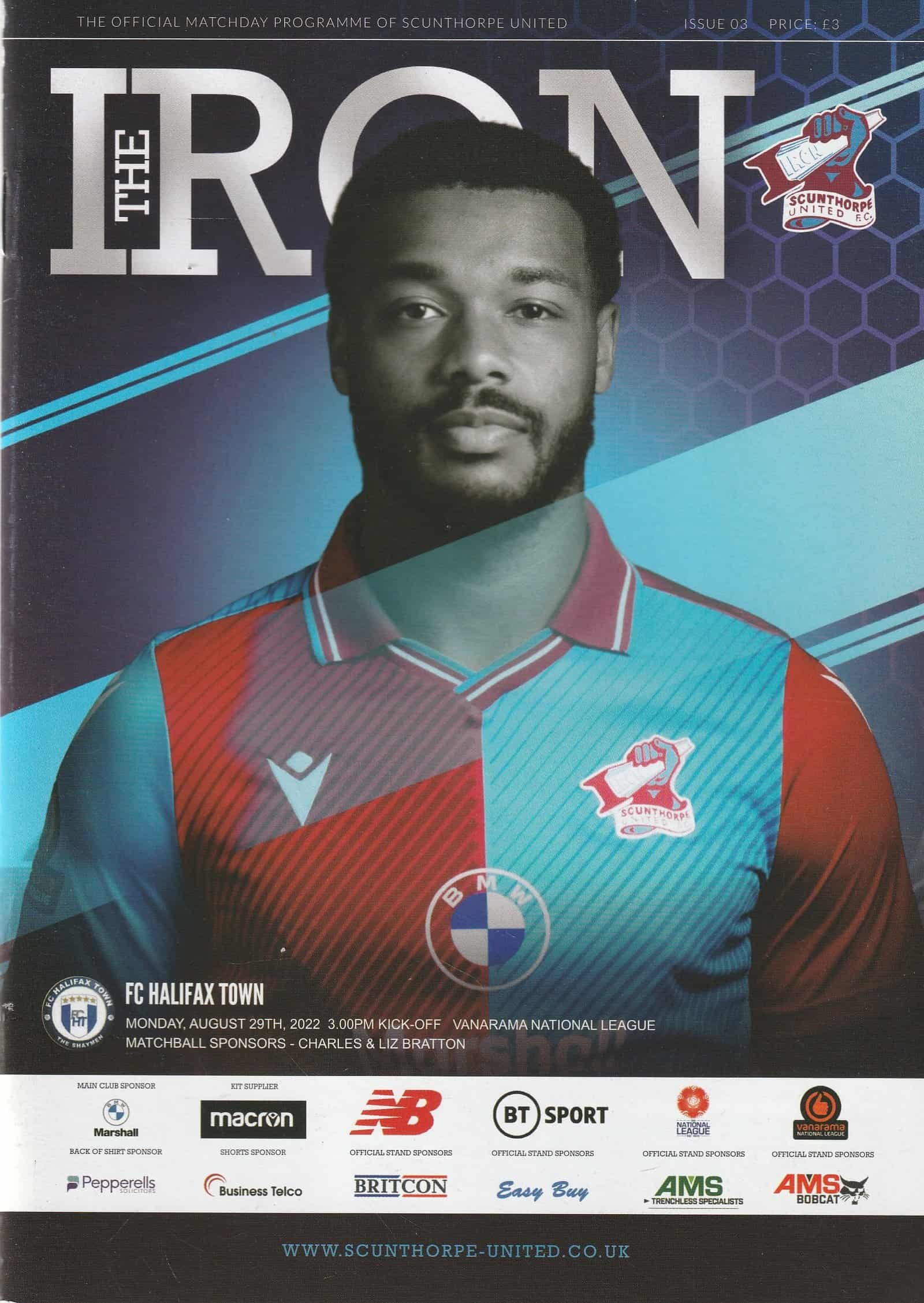 Match: Scunthorpe United v FC Halifax Town Competition: Vanarama National League Date: 29-Aug-2022 Comments: Rating: 4 Condition: Very good Weight in grams: 160
