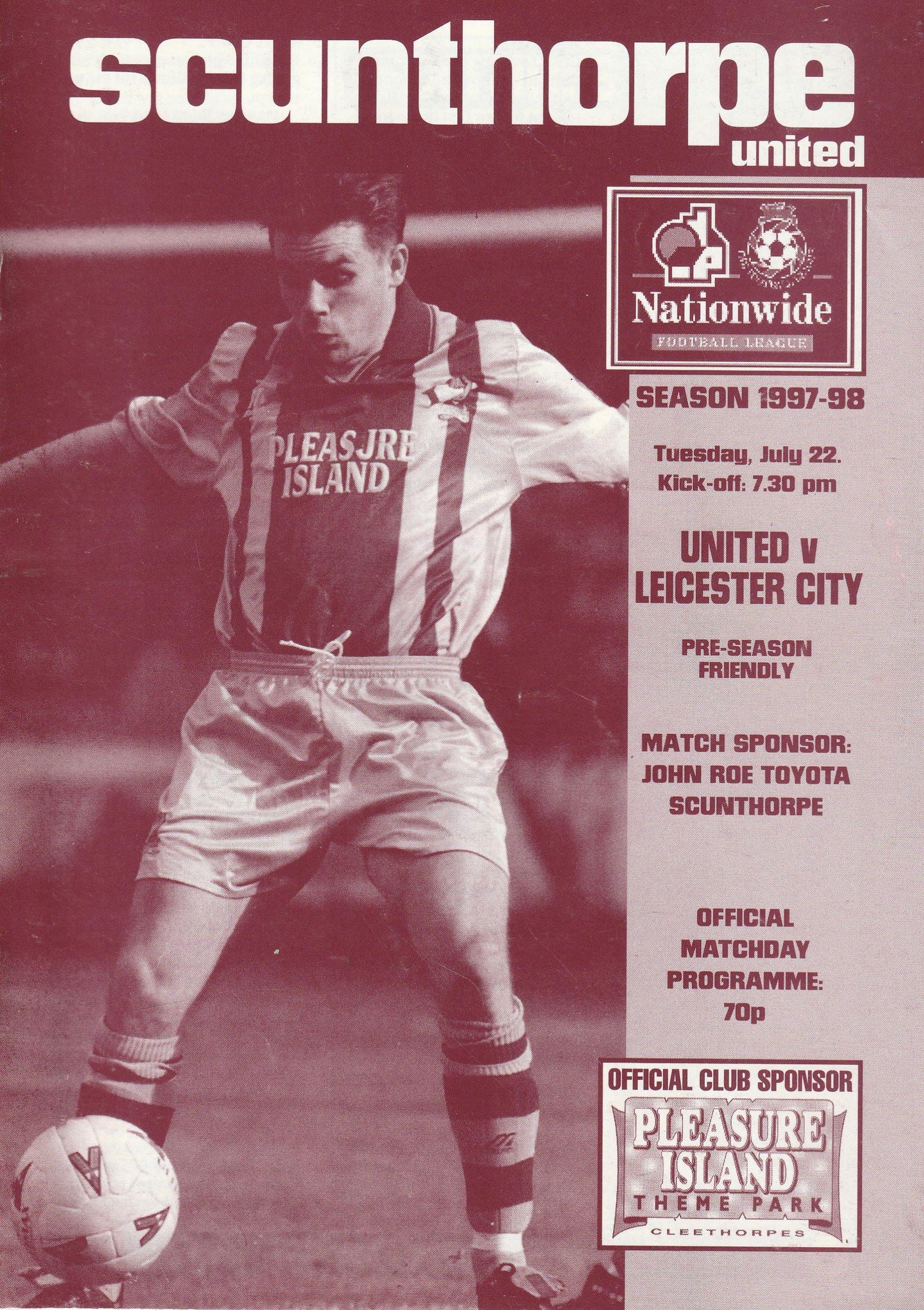 Match: Scunthorpe United v Leicester City Competition: Friendly Date: 22-Jul-1997 Comments: Rating: 3 Condition: Light fold Weight in grams: 60