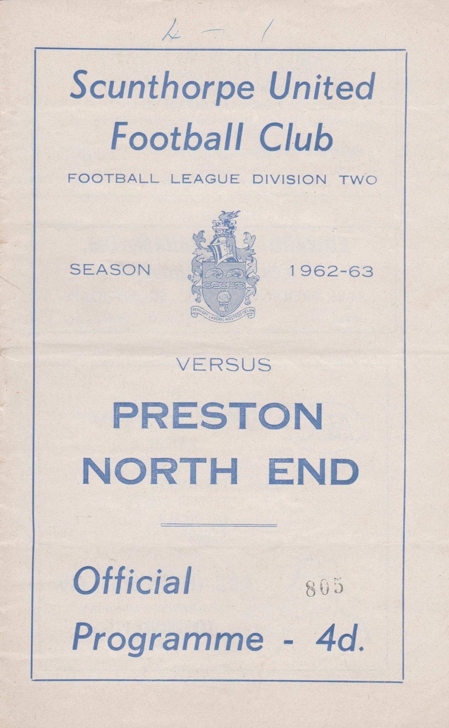 Match: Scunthorpe United v Preston North End Competition: League Division 2 Date: 26-Mar-1963 Comments: Rating: 3 Condition: Slight fold, score on face Weight in grams: 40