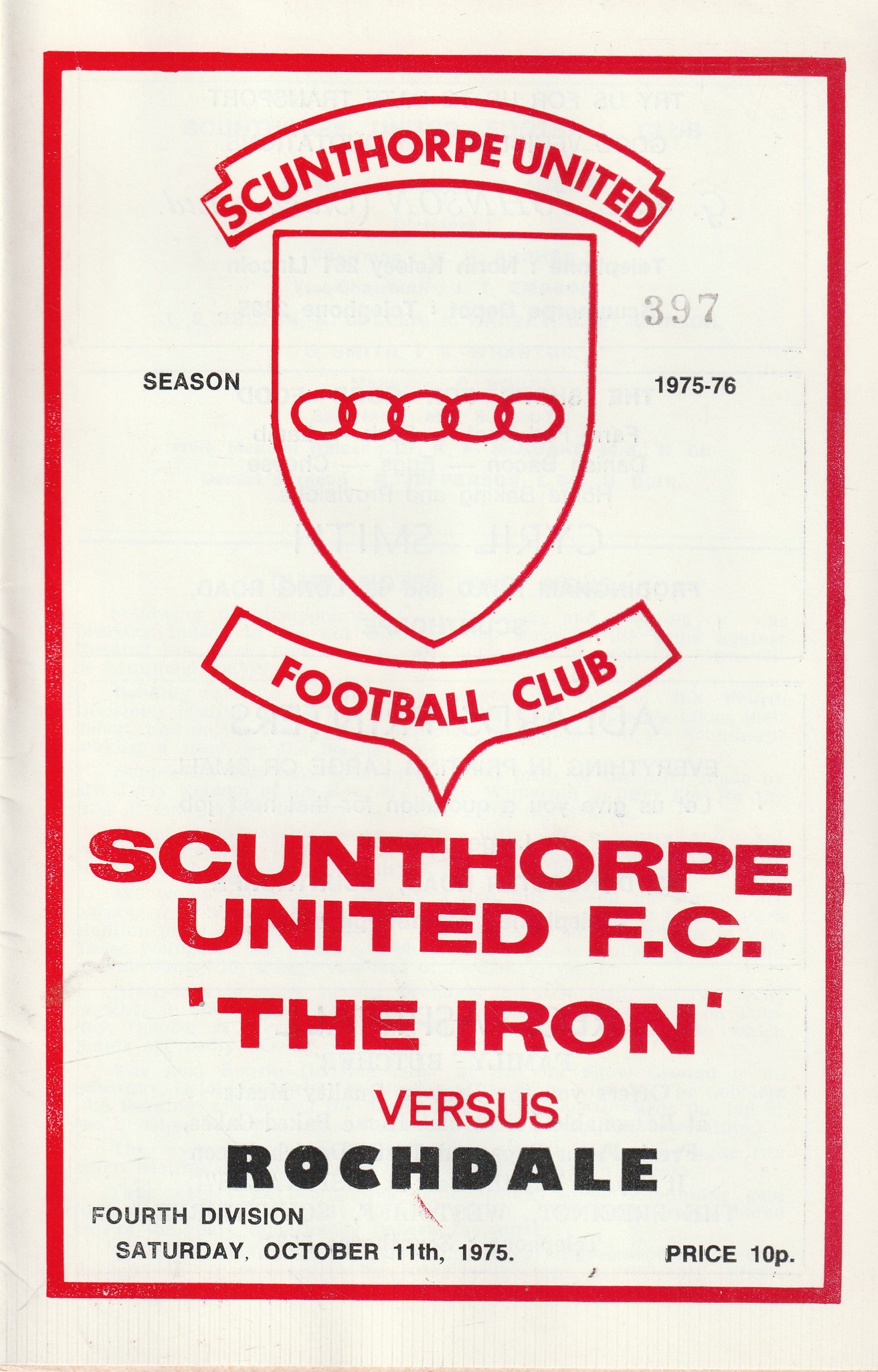 Match: Scunthorpe United v Rochdale Competition: League Division 4 Date: 11-Oct-1975 Comments: Rating: 4 Condition: Very good Weight in grams: 60