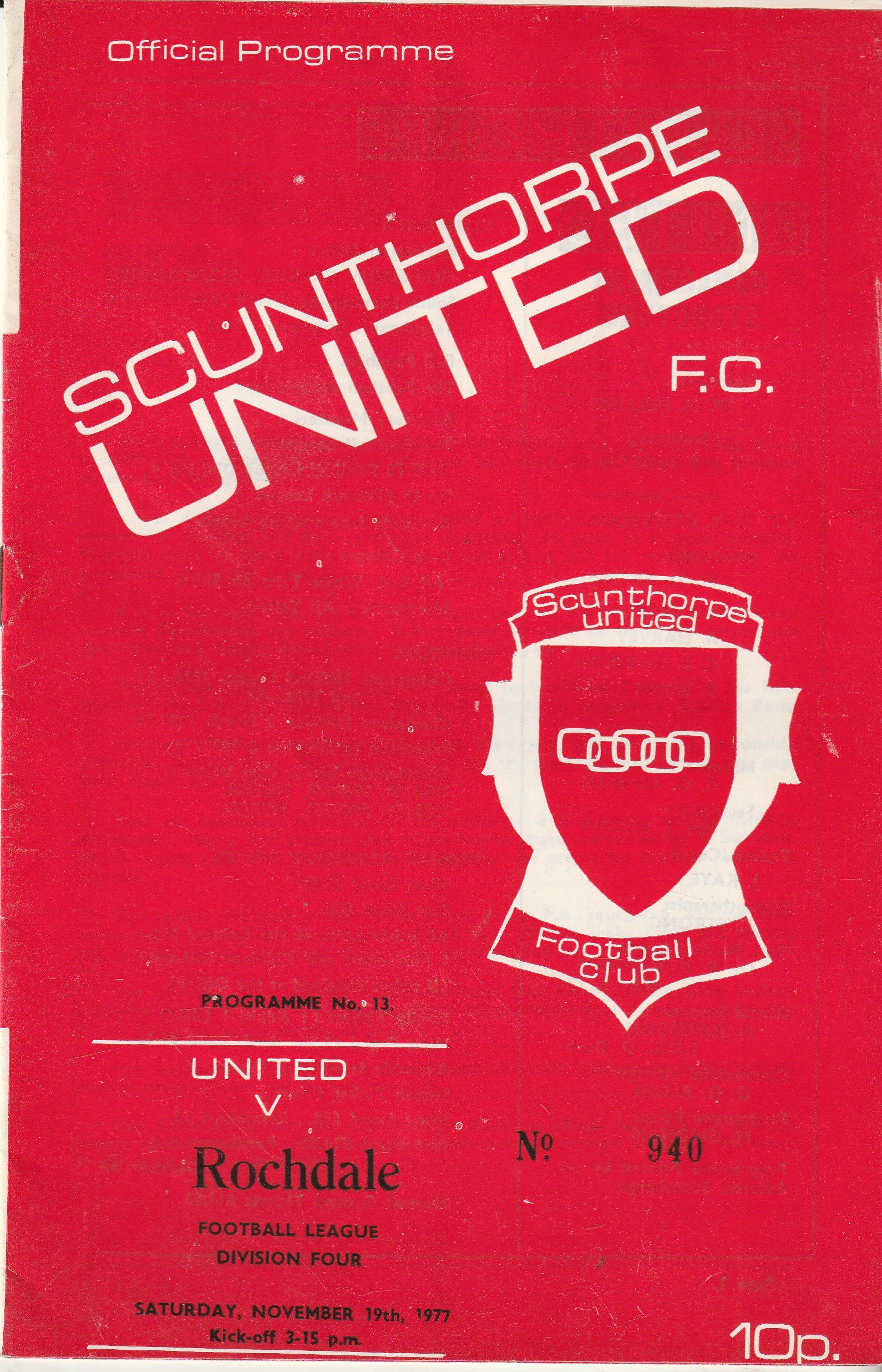 Match: Scunthorpe United v Rochdale Competition: League Division 4 Date: 19-Nov-1977 Comments: Rating: 4 Condition: Very good Weight in grams: 40