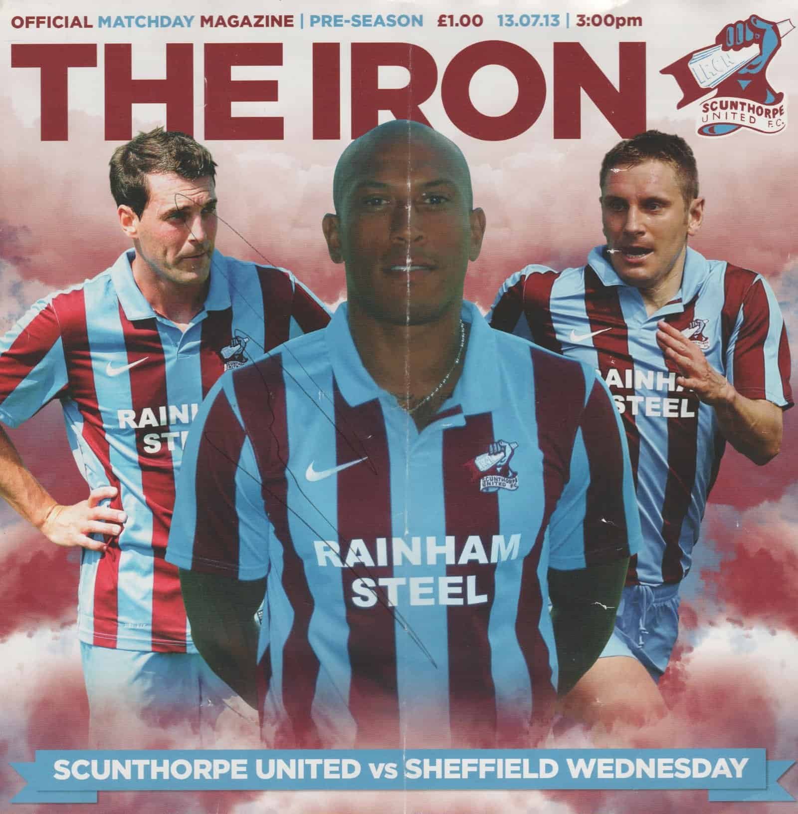 Match: Scunthorpe United v Sheffield Wednesday Competition: Friendly Date: 13-Jul-2013 Comments: 8 autographs on back Rating: 3 Condition: Faint fold, scores inside Weight in grams: 40